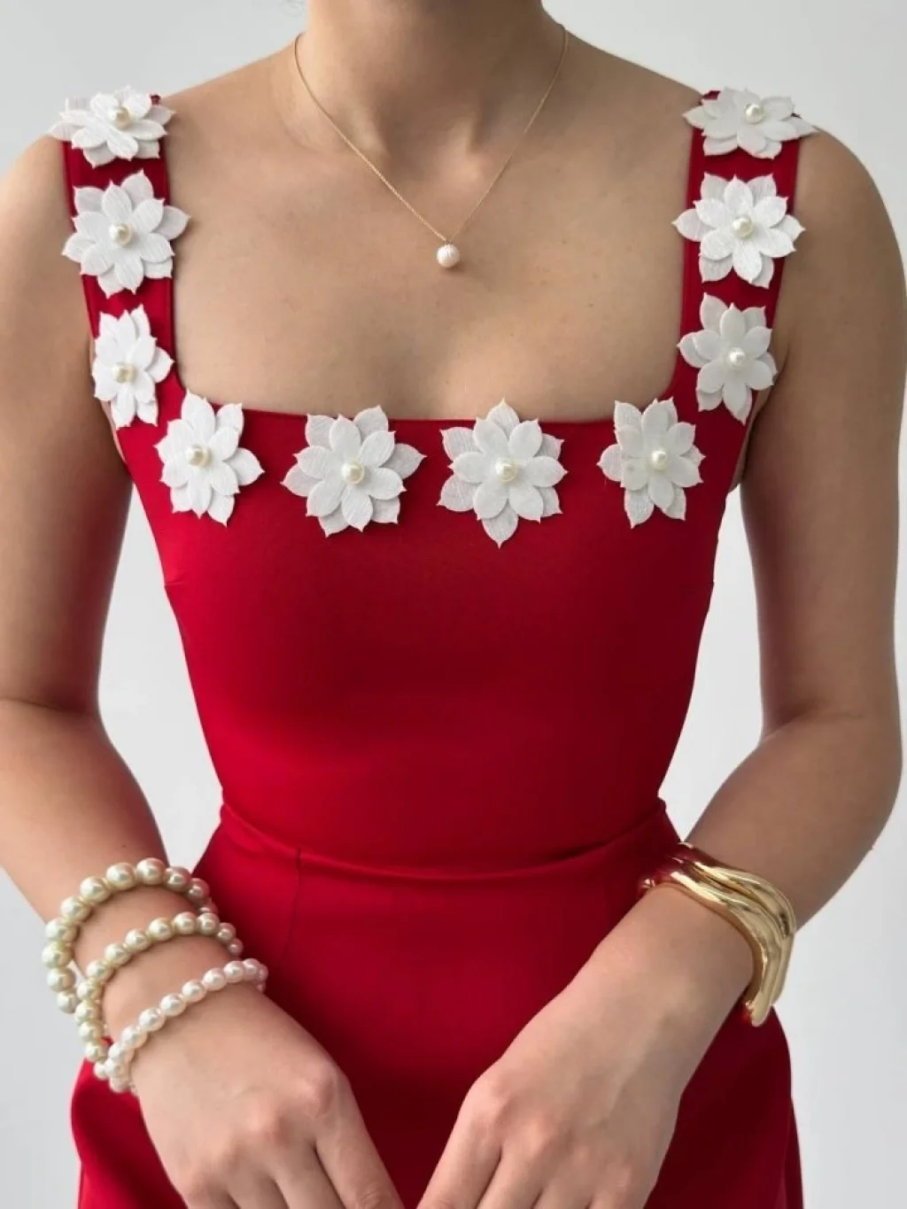 <p>Alyosa Çiçek Detaylı Elbise</p><br> <p>Modelin Ölçüleri: Boy:165, Kg:55, Göğüs:90, Bel:72, Kalça: 100</p><br> <p>Modelin üzerindeki ürün M/38 bedendir</p><br> <ul> </ul>