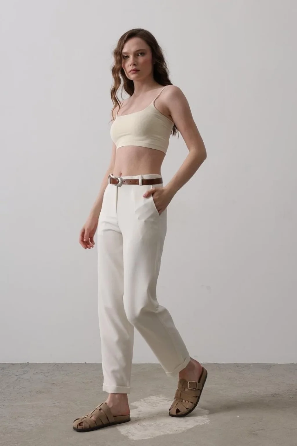Kadın Beli Zincir Detay Ithal Krep Pantolon