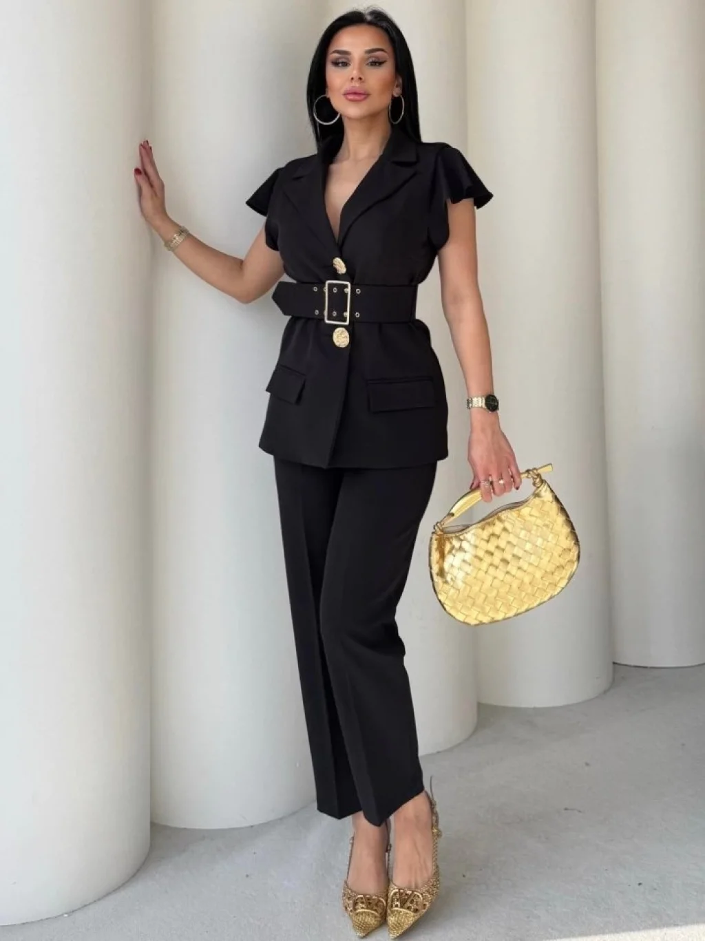 <p>Vatkalı Yelek Pantolon İkili Takım</p><br> <p>Modelin Ölçüleri: Boy:165, Kg:55, Göğüs:90, Bel:72, Kalça: 100</p><br> <p>Modelin üzerindeki ürün M/38 bedendir</p><br> <ul> </ul>