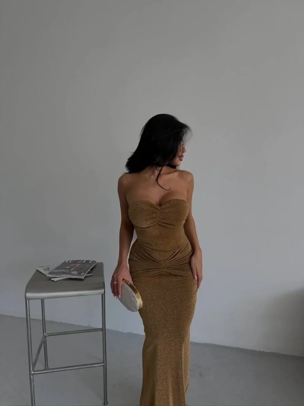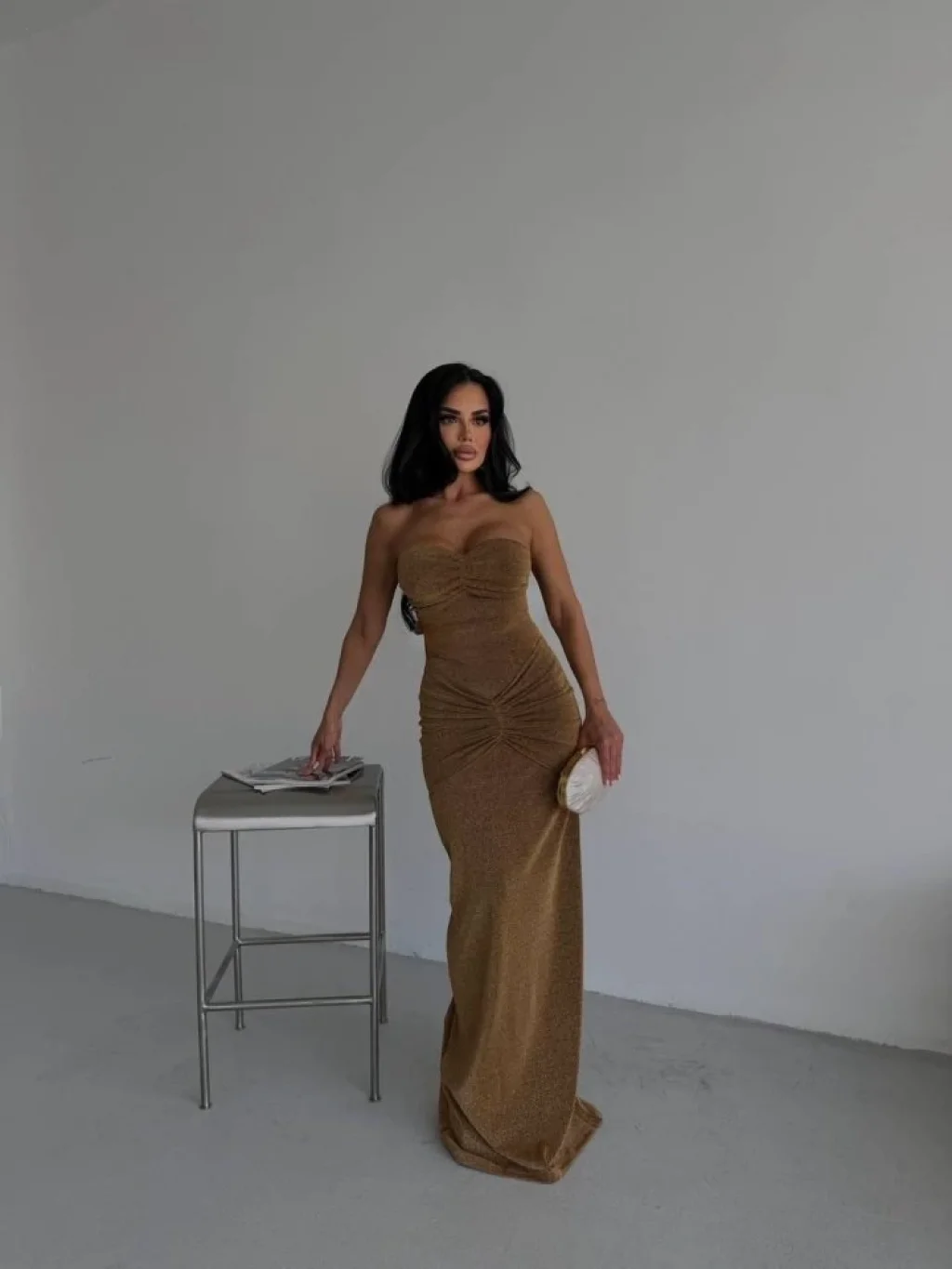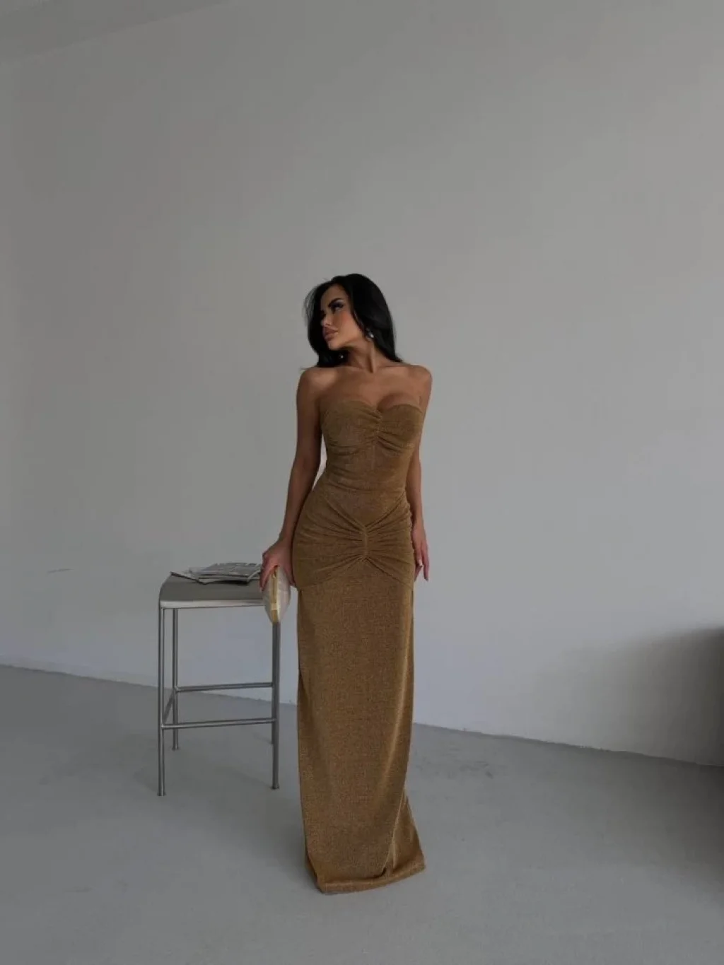 Straplez Simli Uzun Elbise