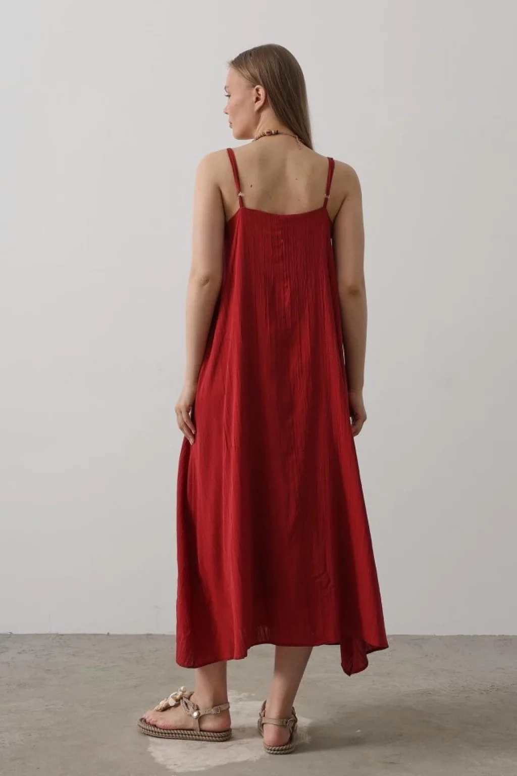 <p>Askılı Uzun Çan Elbise - Bordo</p><br> <p>Modelin Ölçüleri: Boy:165, Kg:55, Göğüs:90, Bel:72, Kalça: 100</p><br> <p>Modelin üzerindeki ürün M/38 bedendir</p><br> <ul> </ul>