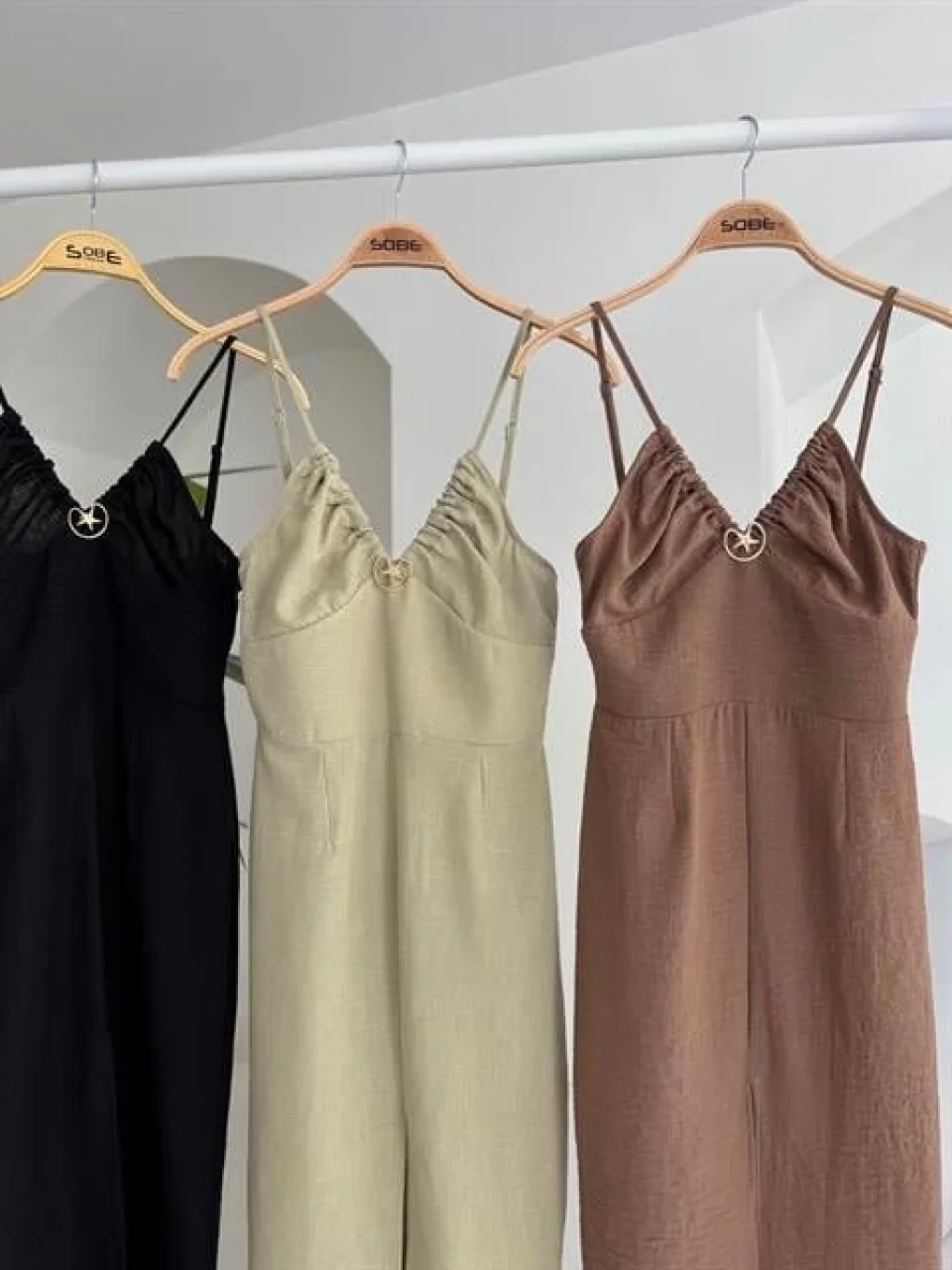 Kadın Aksesuarlı Halter Yaka Sırt Dekolte Detay Maxi Boy Elbise