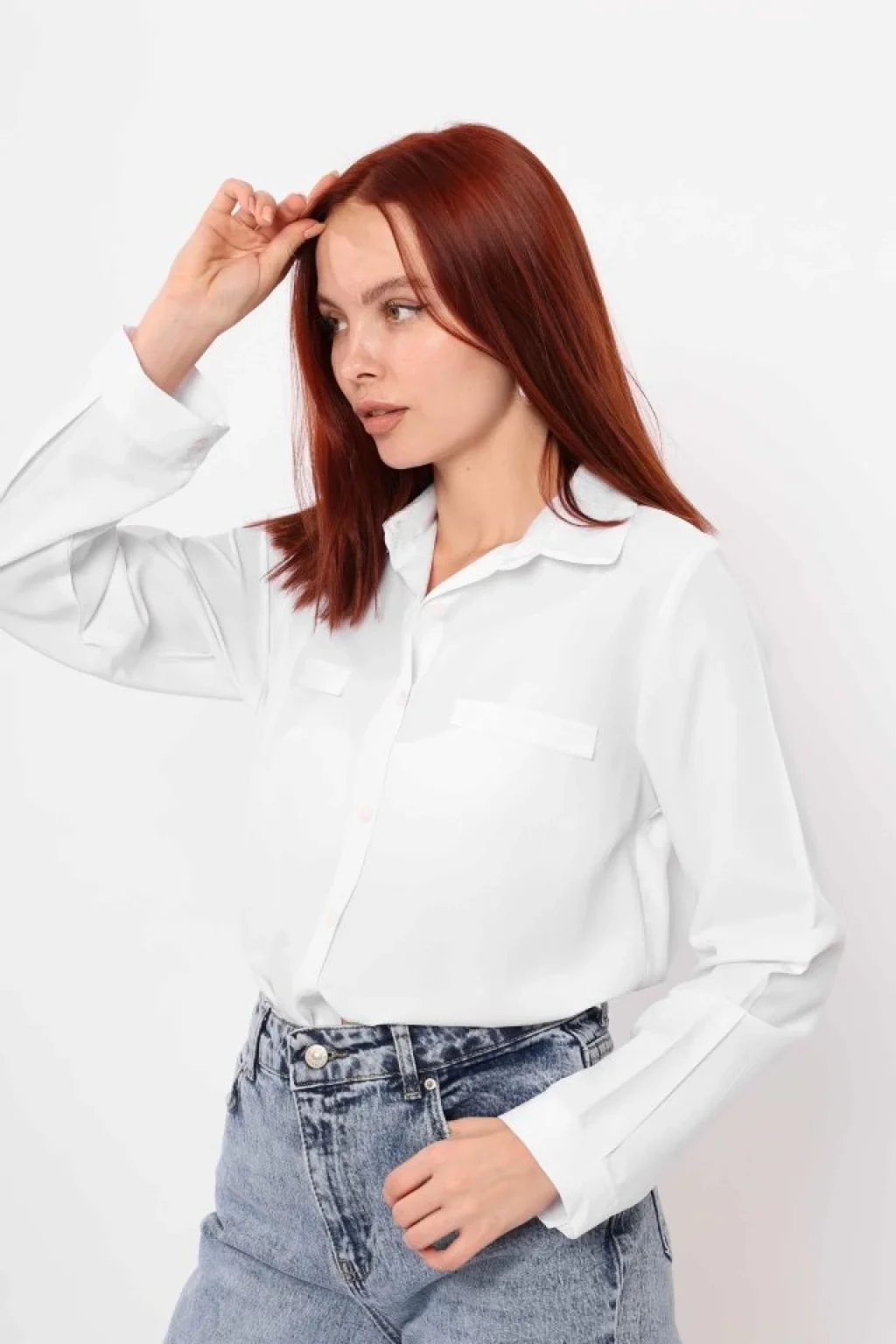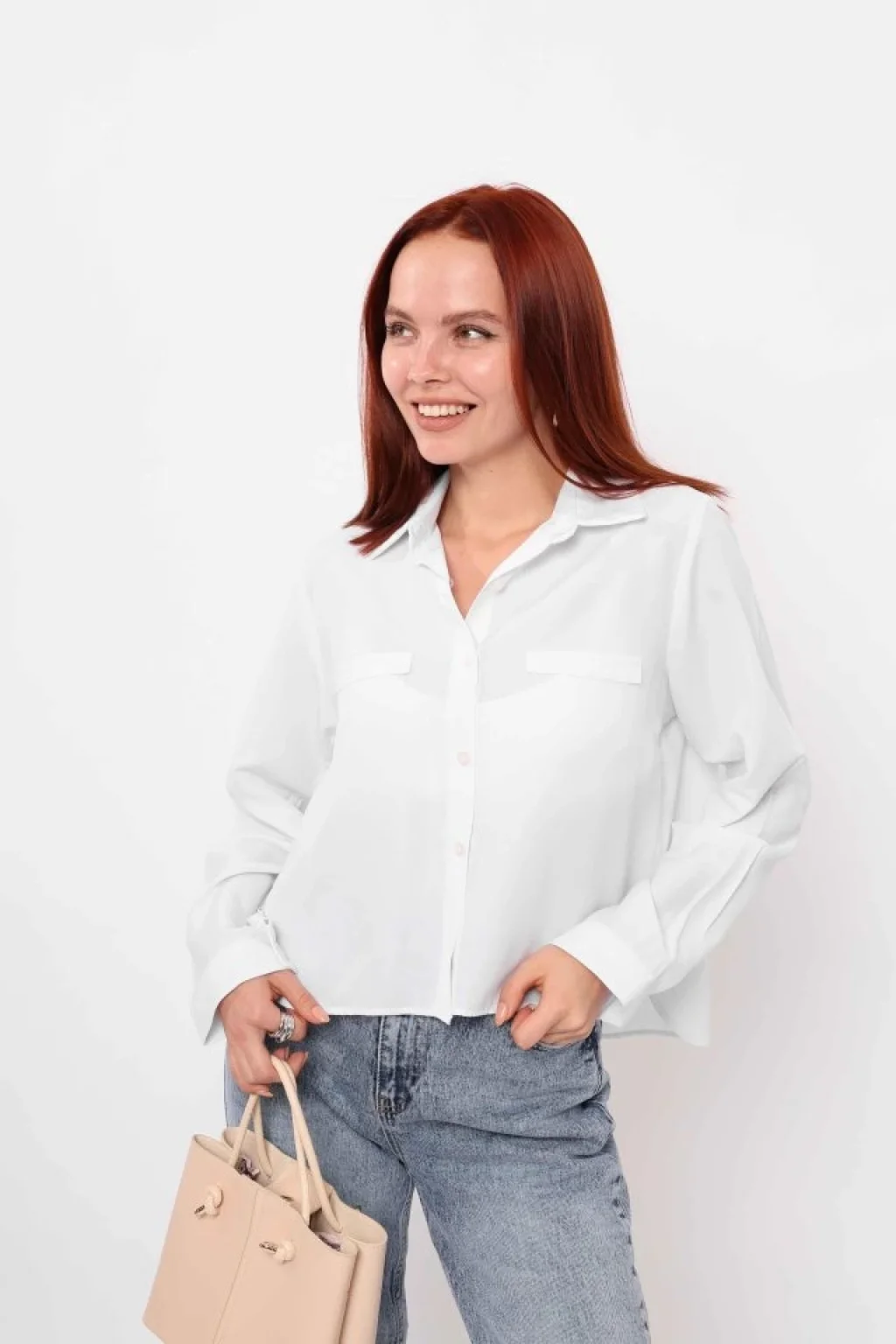 <p>Cepli Uzun Kol Gömlek - Beyaz</p><br> <p>Modelin Ölçüleri: Boy:165, Kg:55, Göğüs:90, Bel:72, Kalça: 100</p><br> <p>Modelin üzerindeki ürün M/38 bedendir</p><br> <ul> </ul>