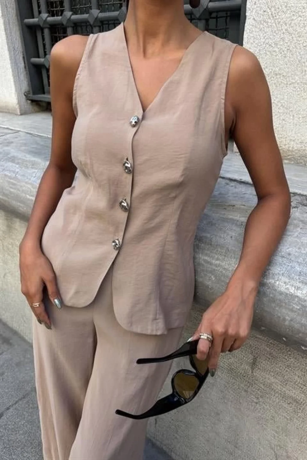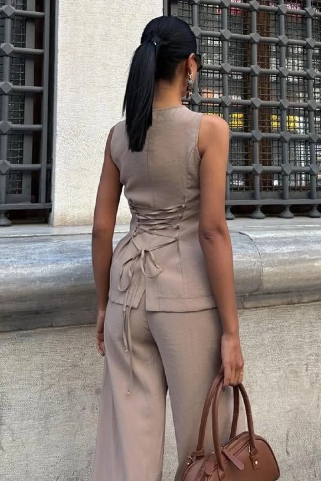 Arkası Bağcıklı Yelek Plazza Pantolon Modal Takım 10202-08