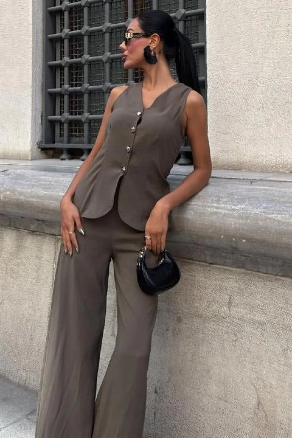 Arkası Bağcıklı Yelek Plazza Pantolon Modal Takım 10202-08