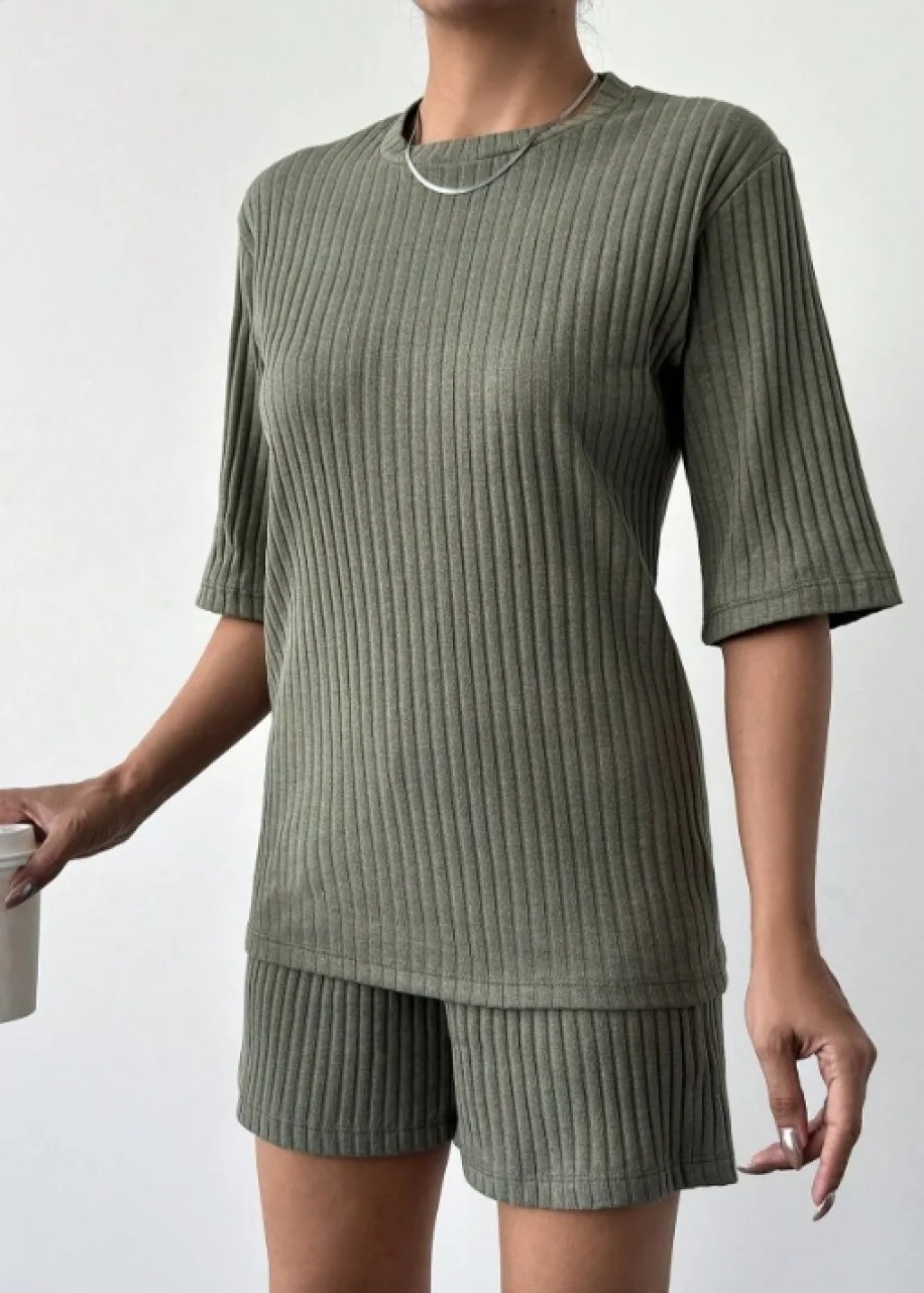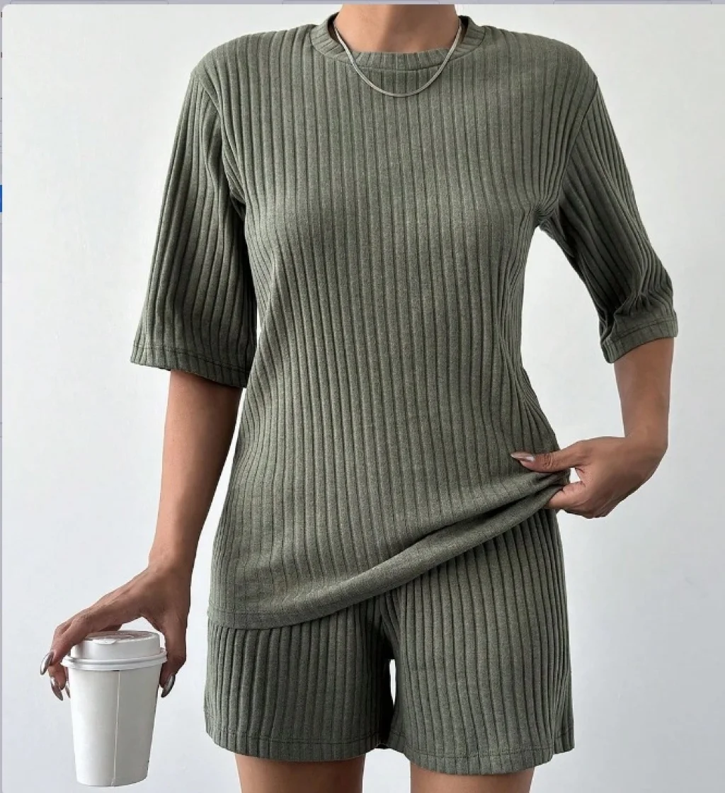 <p>Kadın Kısa Kollu Bisiklet Yaka Kaşkorse Bluz şort Ikili Takım</p><br> <p>Modelin Ölçüleri: Boy:165, Kg:55, Göğüs:90, Bel:72, Kalça: 100</p><br> <p>Modelin üzerindeki ürün M/38 bedendir</p><br> <ul> <li>DESEN-Diğerleri</li><li>KALIP-Klasik</li> </ul>