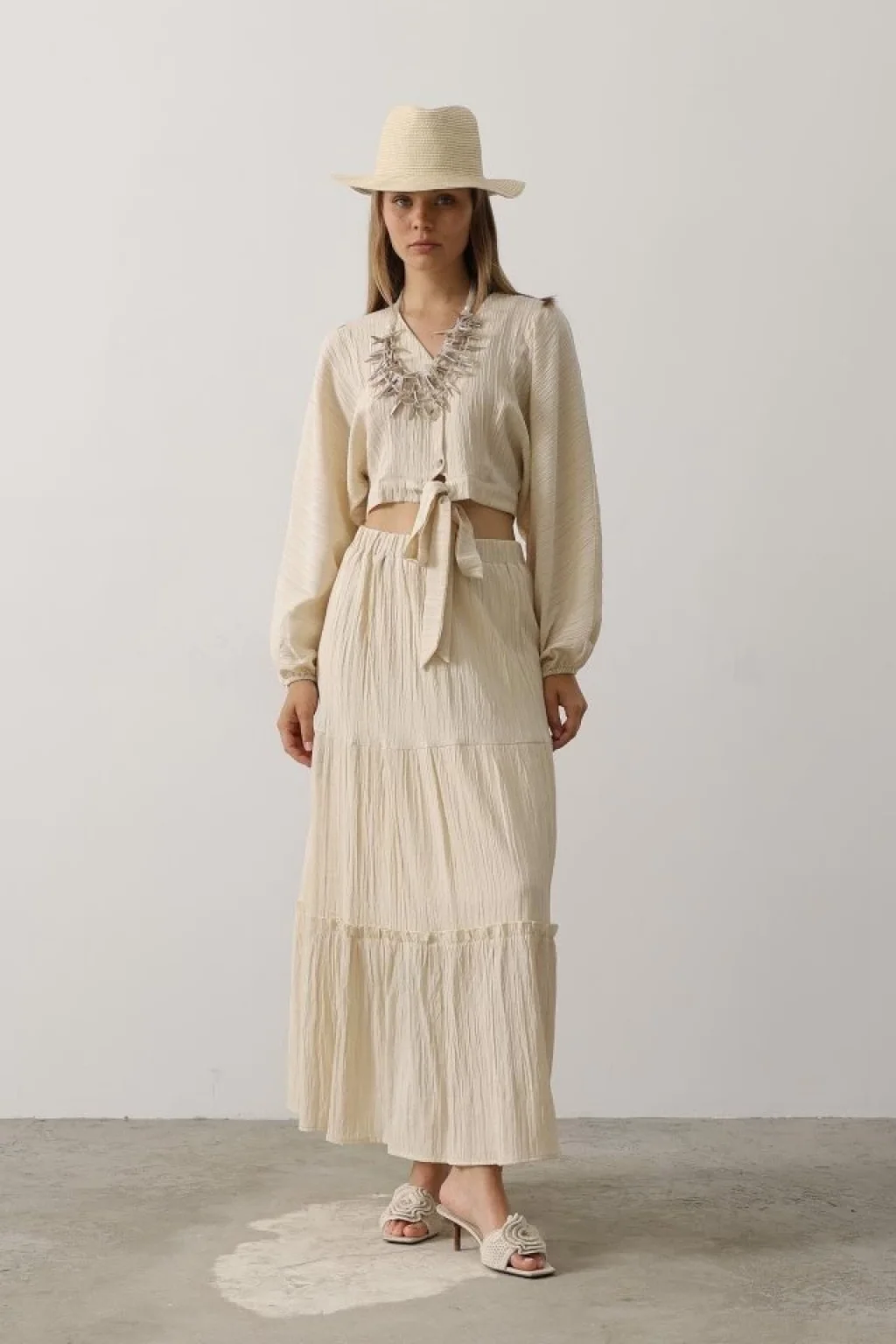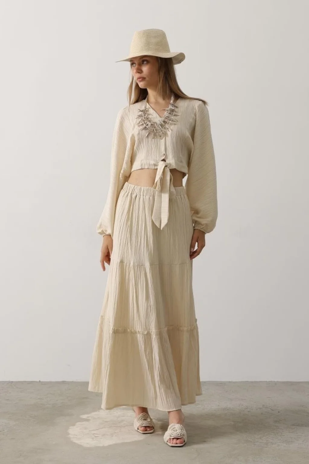 <p>Balon Kollu Etekli Kaş Takım - Taş</p><br> <p>Modelin Ölçüleri: Boy:165, Kg:55, Göğüs:90, Bel:72, Kalça: 100</p><br> <p>Modelin üzerindeki ürün M/38 bedendir</p><br> <ul> </ul>