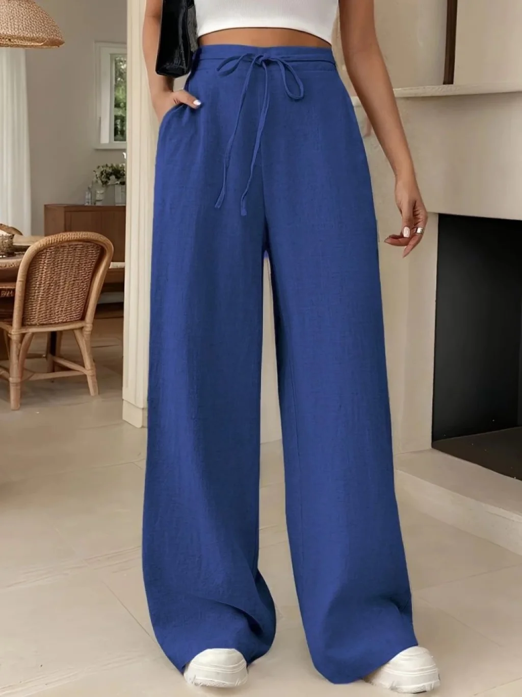 Kadın Yüksek Bel Bağcıklı Geniş Paçalı Uzun Bürümcük Pantolon