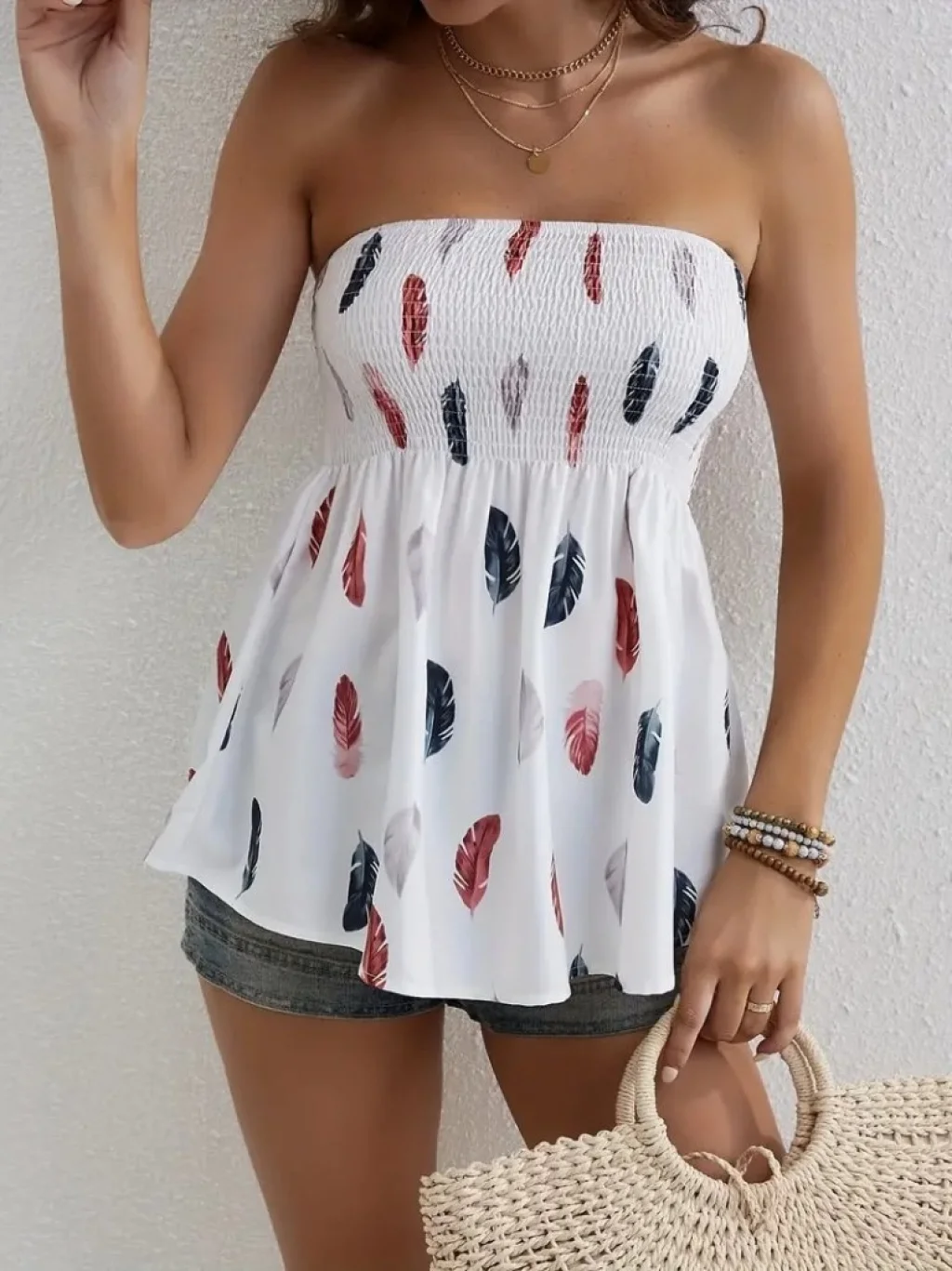 Kadın Yaprak Desenli Göğsü Gipeli Mosskrep Straplez Bluz