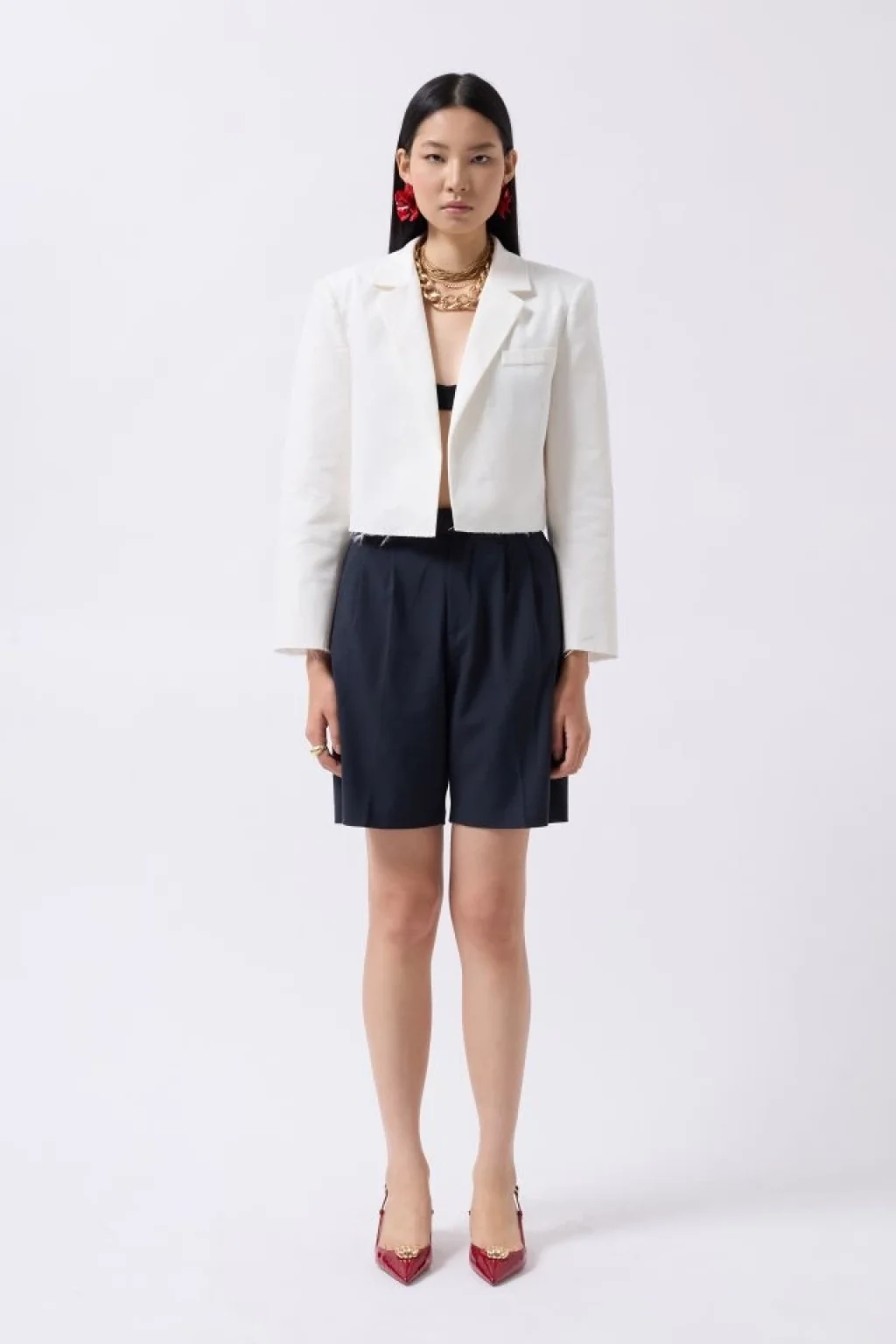 Crop Keten Blazer Ceket