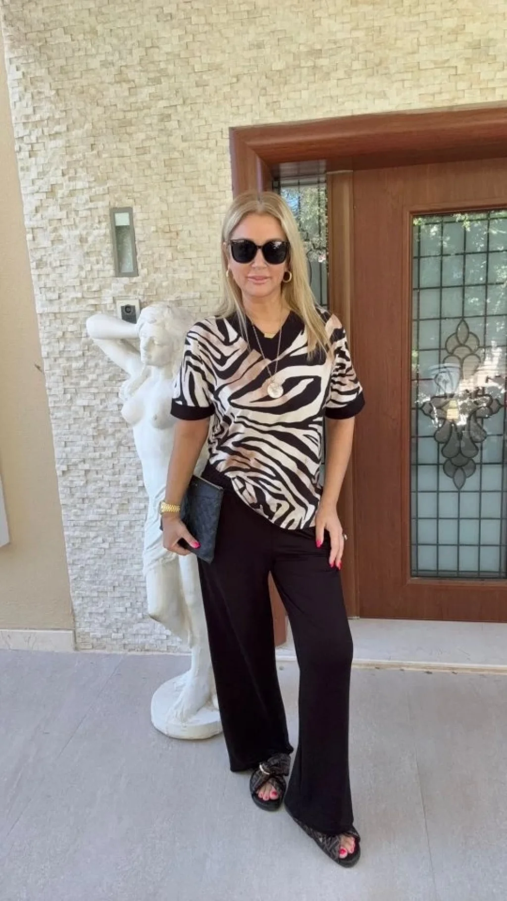<p>Kadın Zebra Desenli Ikili Takım</p><br> <p>Modelin Ölçüleri: Boy:165, Kg:55, Göğüs:90, Bel:72, Kalça: 100</p><br> <p>Modelin üzerindeki ürün M/38 bedendir</p><br> <ul> </ul>