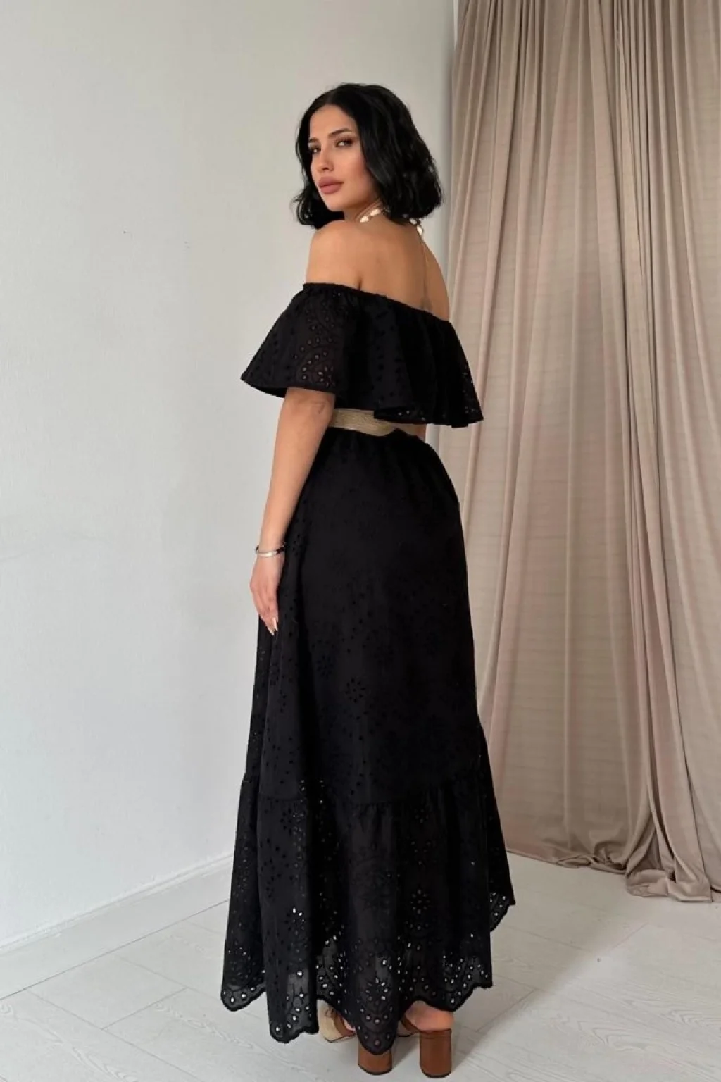 <p>Siyah Omzu Lastikli Brode Elbise</p><br> <p>Modelin Ölçüleri: Boy:165, Kg:55, Göğüs:90, Bel:72, Kalça: 100</p><br> <p>Modelin üzerindeki ürün M/38 bedendir</p><br> <ul> </ul>