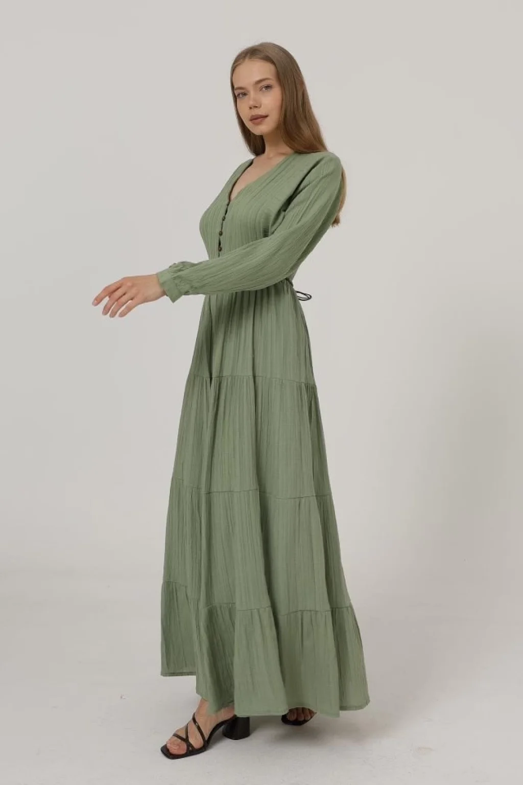 <p>Önü Yarım Düğmeli Uzun Kol Kemerli Elbise - Haki</p><br> <p>Modelin Ölçüleri: Boy:165, Kg:55, Göğüs:90, Bel:72, Kalça: 100</p><br> <p>Modelin üzerindeki ürün M/38 bedendir</p><br> <ul> </ul>