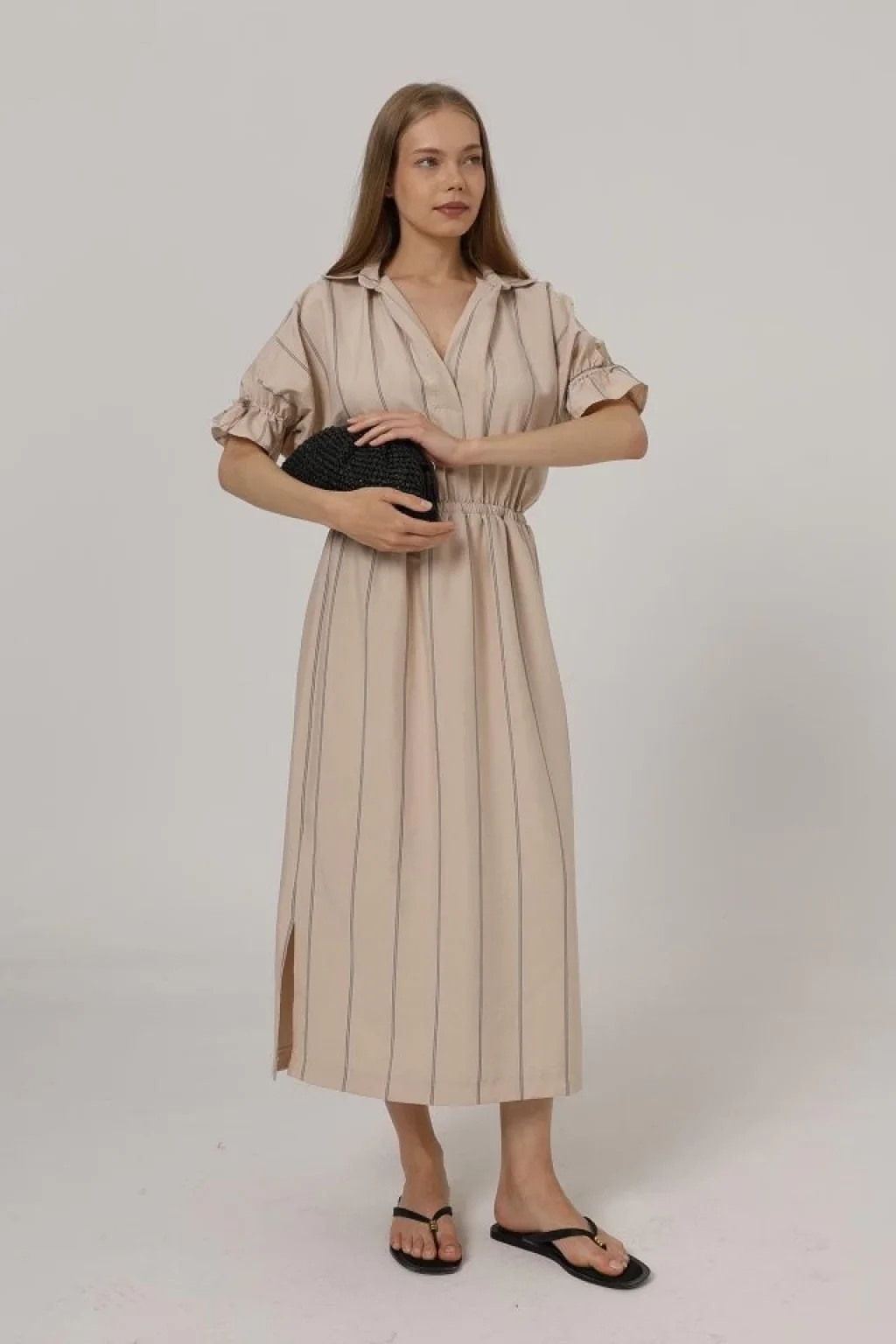 <p>Beli Lastikli Elbise - Taş</p><br> <p>Modelin Ölçüleri: Boy:165, Kg:55, Göğüs:90, Bel:72, Kalça: 100</p><br> <p>Modelin üzerindeki ürün M/38 bedendir</p><br> <ul> </ul>