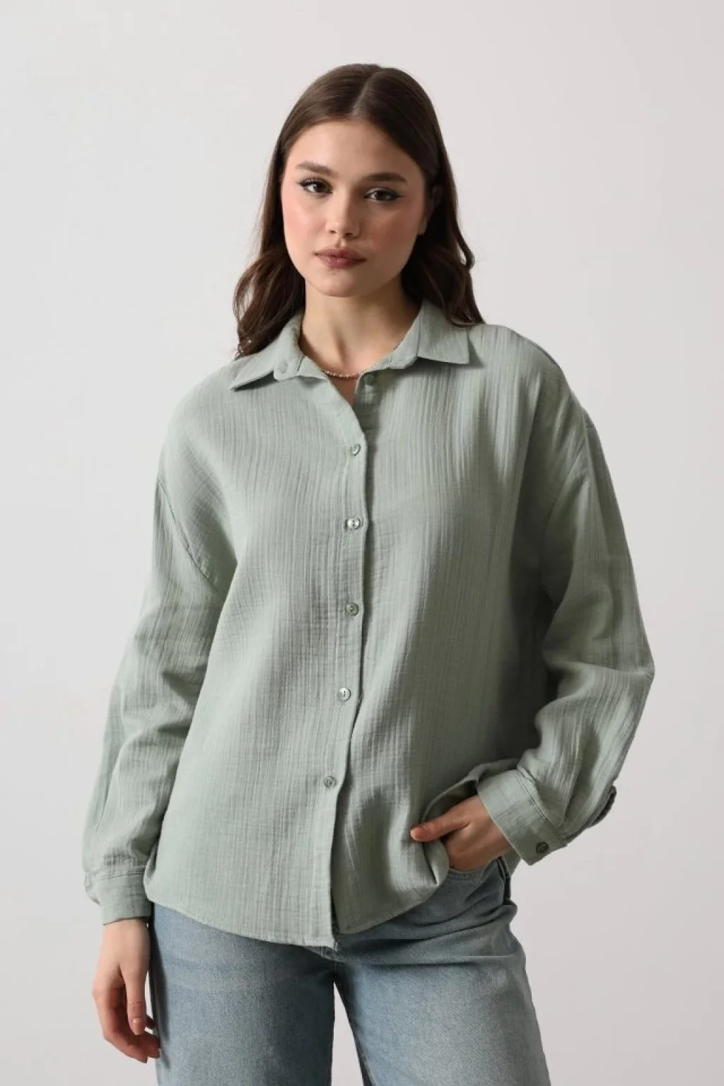<p>Müslin Uzun Kol Gömlek - Haki</p><br> <p>Modelin Ölçüleri: Boy:165, Kg:55, Göğüs:90, Bel:72, Kalça: 100</p><br> <p>Modelin üzerindeki ürün M/38 bedendir</p><br> <ul> </ul>