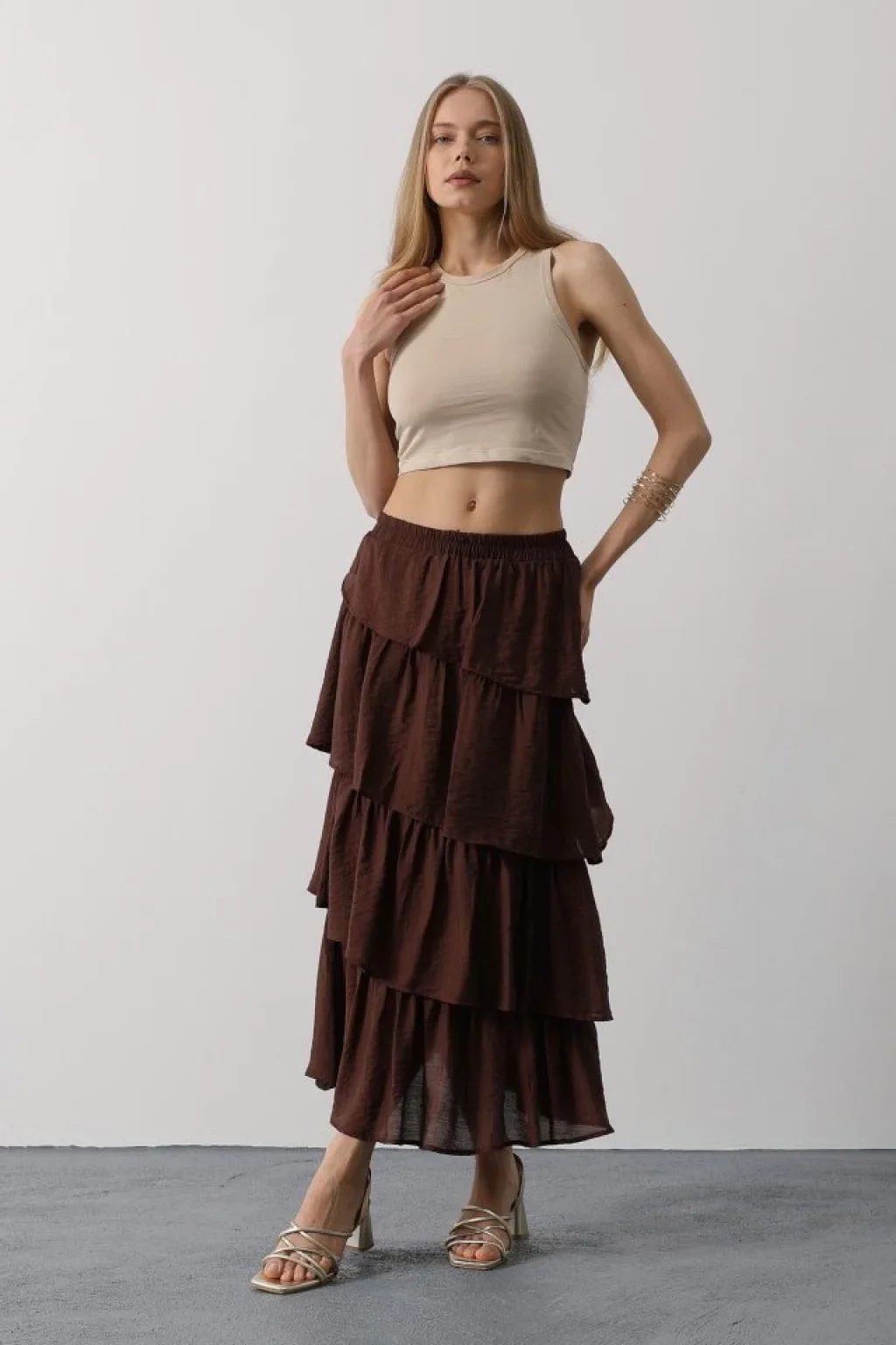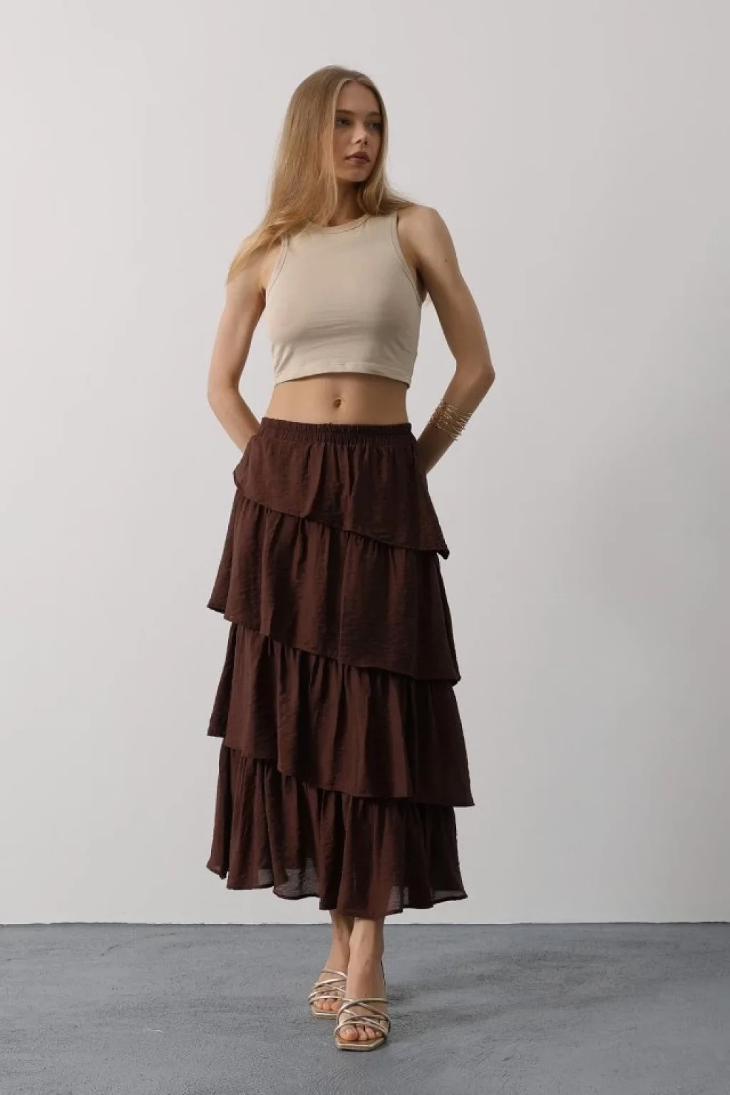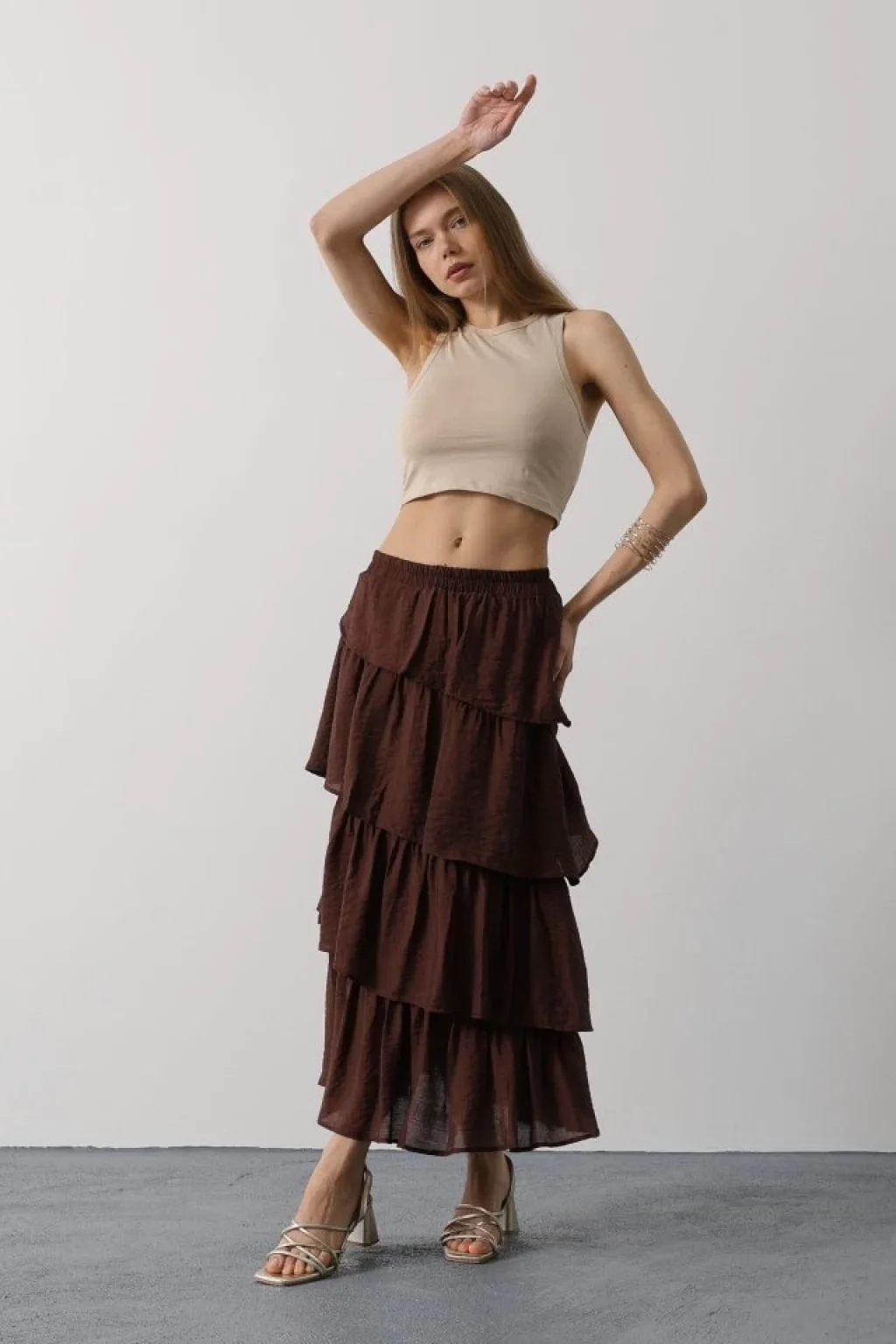 <p>Katlı Kesim Uzun Etek - Kahve</p><br> <p>Modelin Ölçüleri: Boy:165, Kg:55, Göğüs:90, Bel:72, Kalça: 100</p><br> <p>Modelin üzerindeki ürün M/38 bedendir</p><br> <ul> </ul>