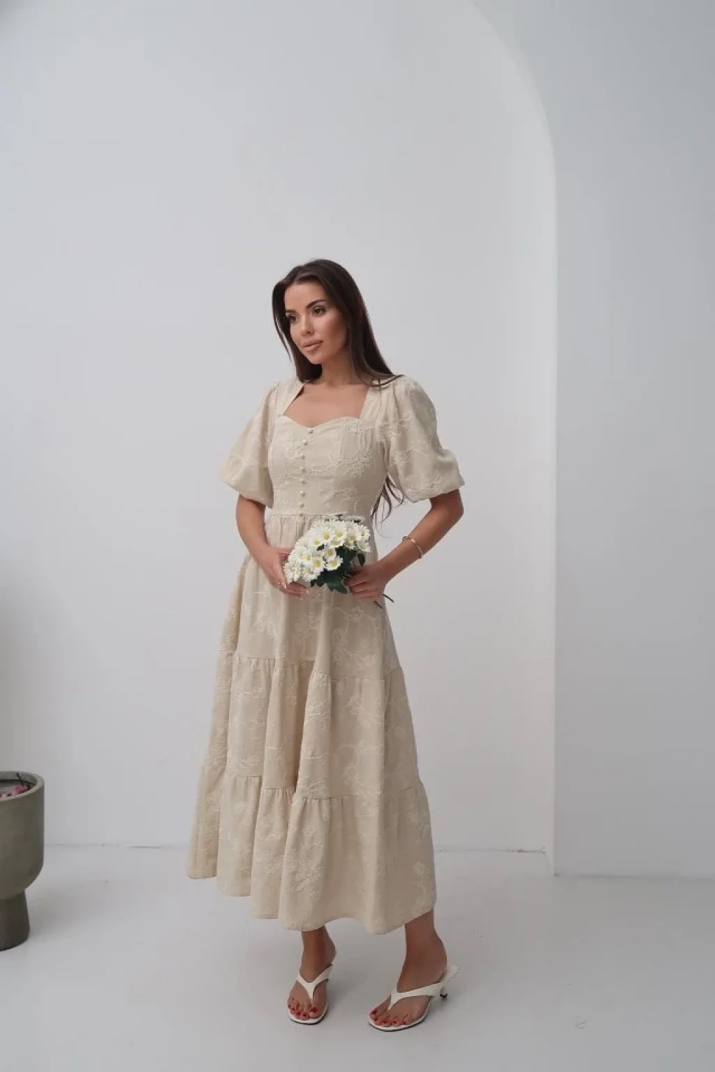 <p>Bej Süs Düğmeli Balon Kollu Elbise</p><br> <p>Modelin Ölçüleri: Boy:165, Kg:55, Göğüs:90, Bel:72, Kalça: 100</p><br> <p>Modelin üzerindeki ürün M/38 bedendir</p><br> <ul> </ul>
