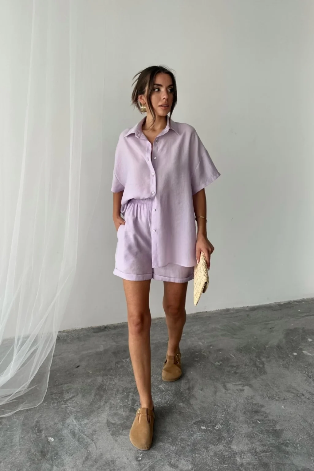 GÖMLEK - ŞORT TAKIM - Lila