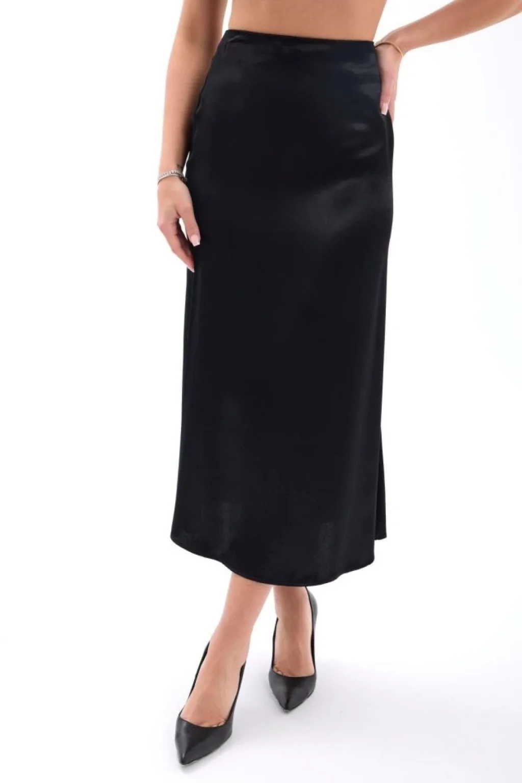 Kadın Yüksek Bel Lazer Kesim Detaylı Midi Ithal Krep Etek