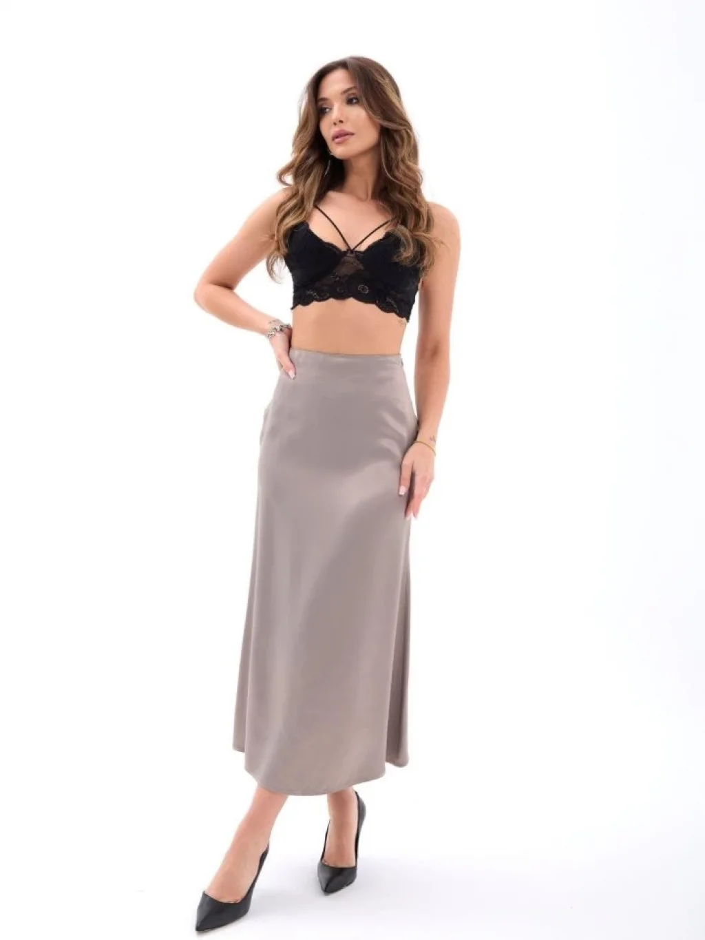 Kadın Yüksek Bel Lazer Kesim Detaylı Midi Ithal Krep Etek