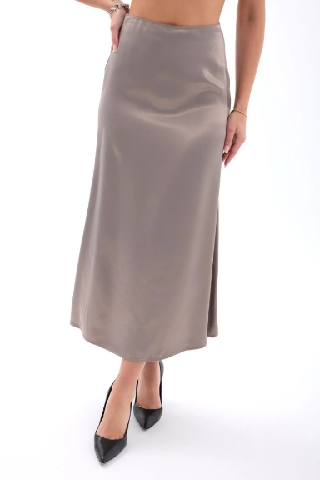 Kadın Iki Iplik Kumaş Beli Lastikli Arkası Yırtmaçlı Mıdı Boy Etek