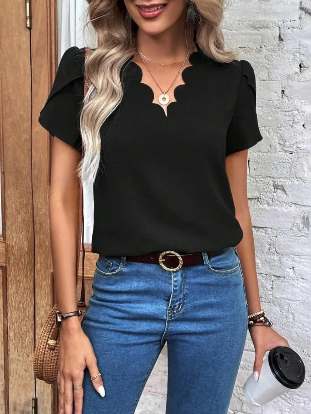 <p>Kadın Kısa Kollu Lazer V Yakalı Ithal Krep Bluz</p><br> <p>Modelin Ölçüleri: Boy:165, Kg:55, Göğüs:90, Bel:72, Kalça: 100</p><br> <p>Modelin üzerindeki ürün M/38 bedendir</p><br> <ul> <li>DESEN-Diğerleri</li><li>KALIP-Klasik</li> </ul>