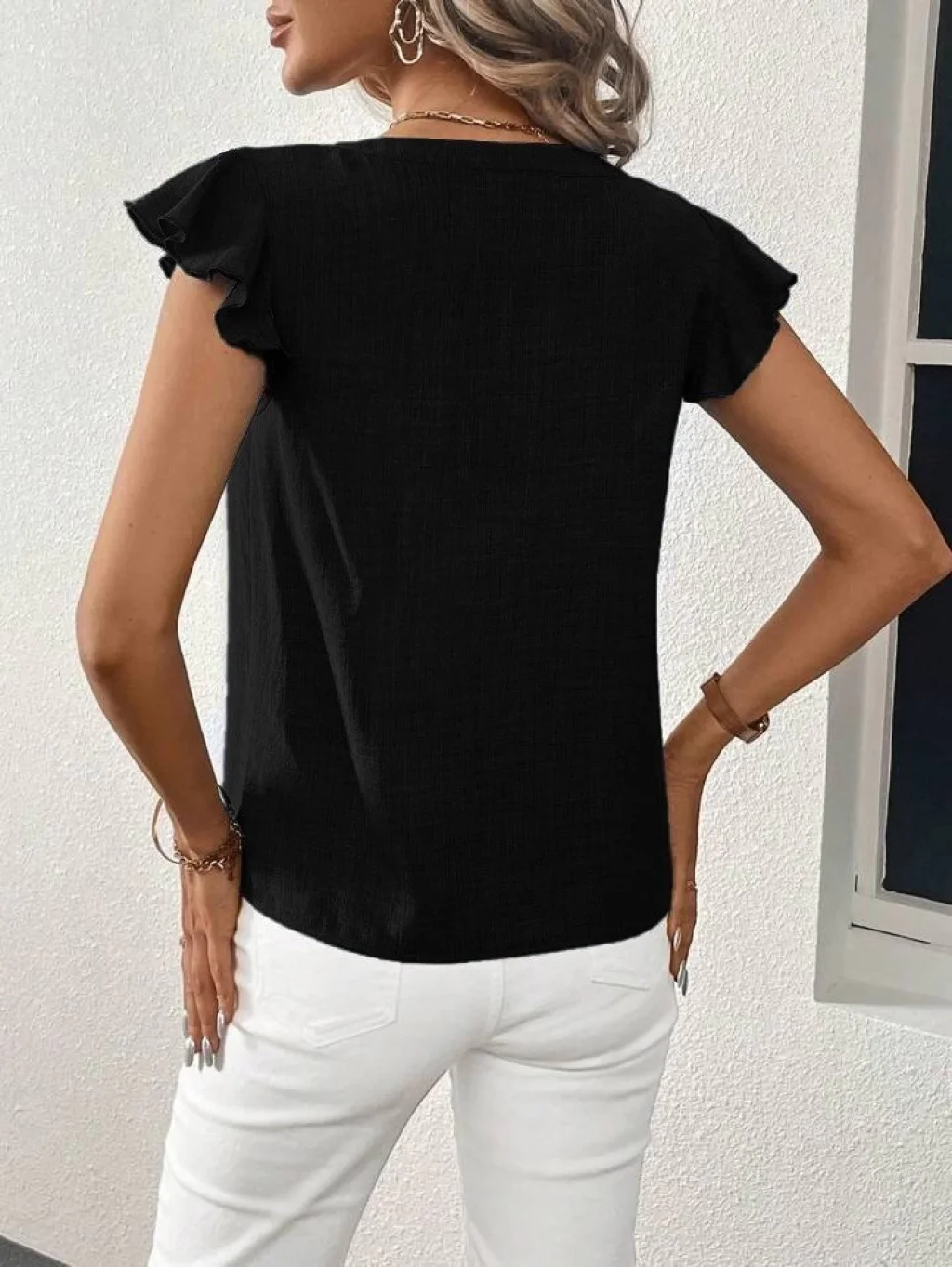 <p>Kadın Kısa Kelebek Kollu V Yakalı Bluz</p><br> <p>Modelin Ölçüleri: Boy:165, Kg:55, Göğüs:90, Bel:72, Kalça: 100</p><br> <p>Modelin üzerindeki ürün M/38 bedendir</p><br> <ul> <li>DESEN-Diğerleri</li><li>KALIP-Klasik</li> </ul>