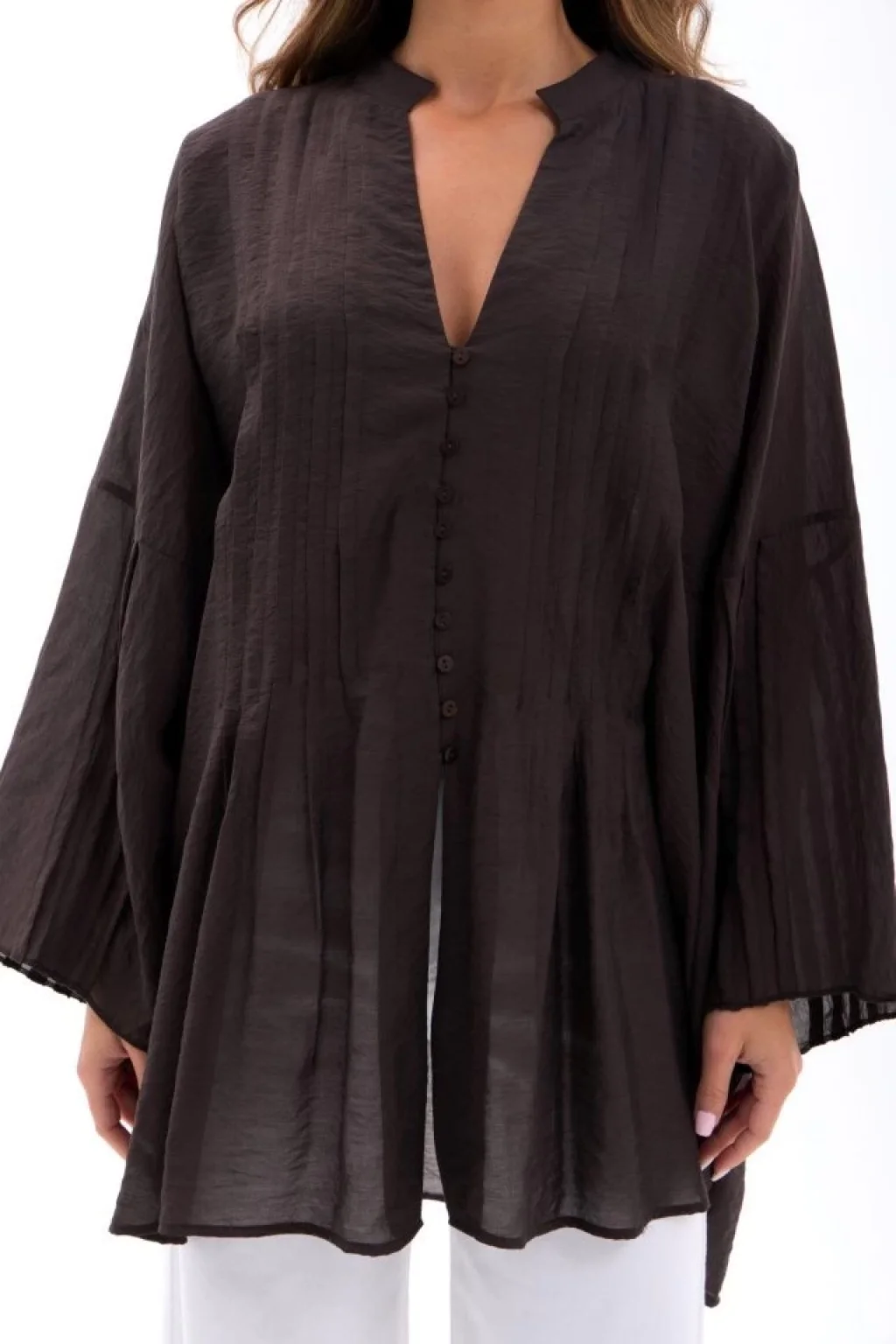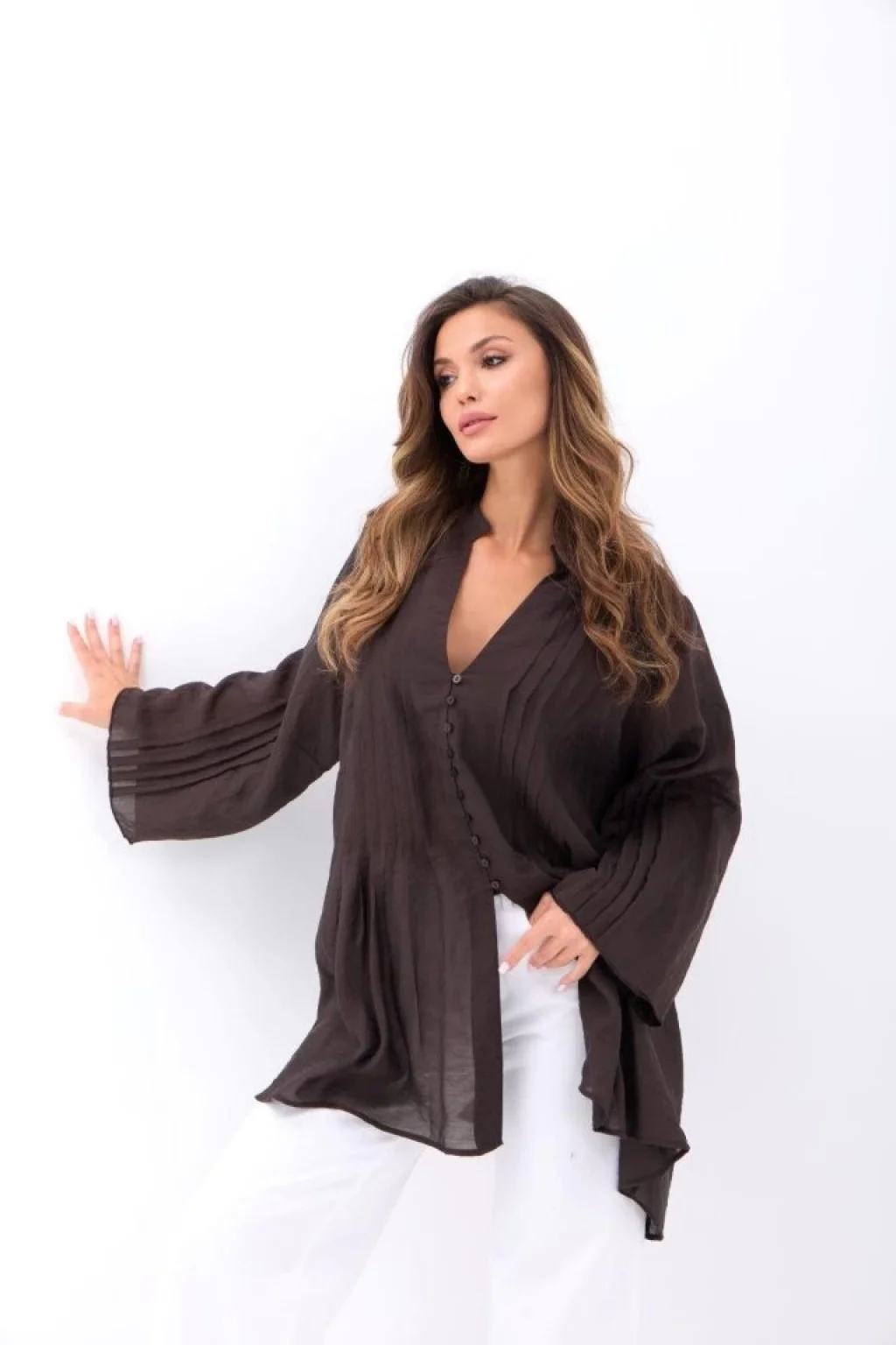 Kadın Dokuma Viskon Kumaş V Yaka Dekolte Ve Metal Düğme Detaylı Gömlek