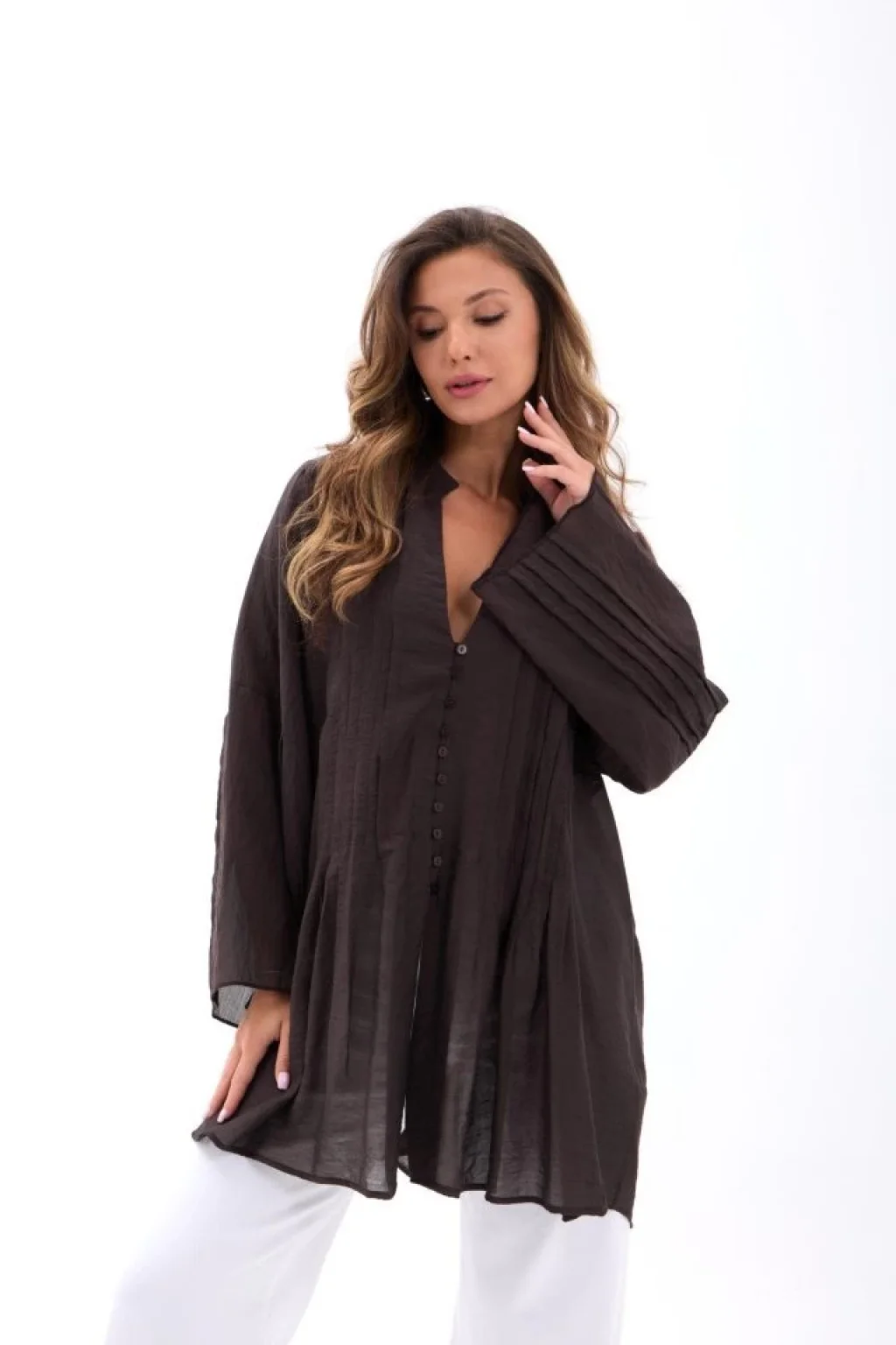 BEL BÜZGÜ DETAYLI POPLİN GÖMLEK - Kahverengi