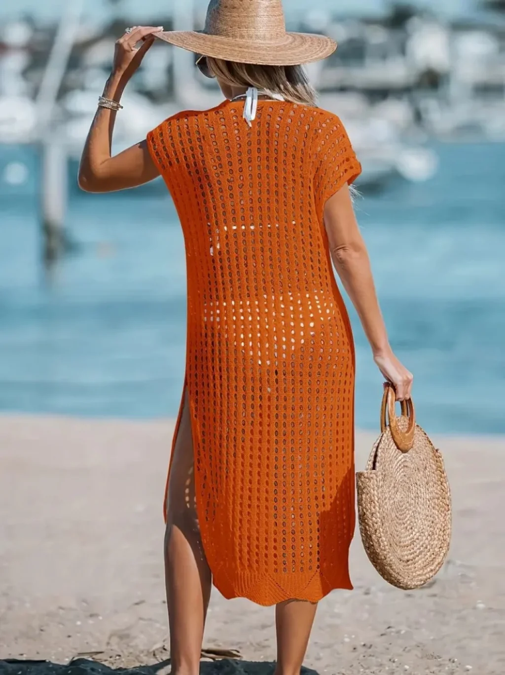 Kadın Sıfır Kol V Yaka Yanı Derin Yırtmaçlı Midi Boy Triko Elbise