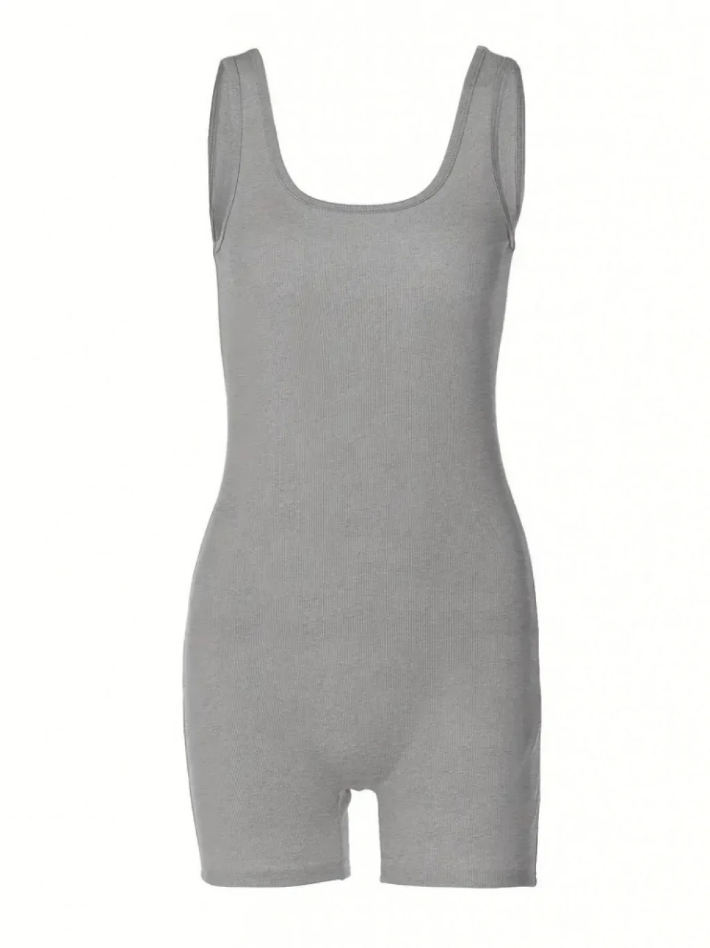 Kadın Kare Yaka Sırt Dekolte Detay Dalgıç Bodycon Mini Tulum