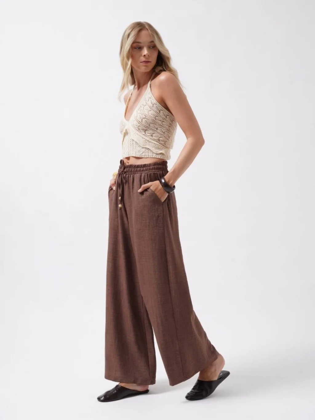 <p>Aksesuar Detay Keten Pantolon</p><br> <p>Modelin Ölçüleri: Boy:165, Kg:55, Göğüs:90, Bel:72, Kalça: 100</p><br> <p>Modelin üzerindeki ürün M/38 bedendir</p><br> <ul> </ul>