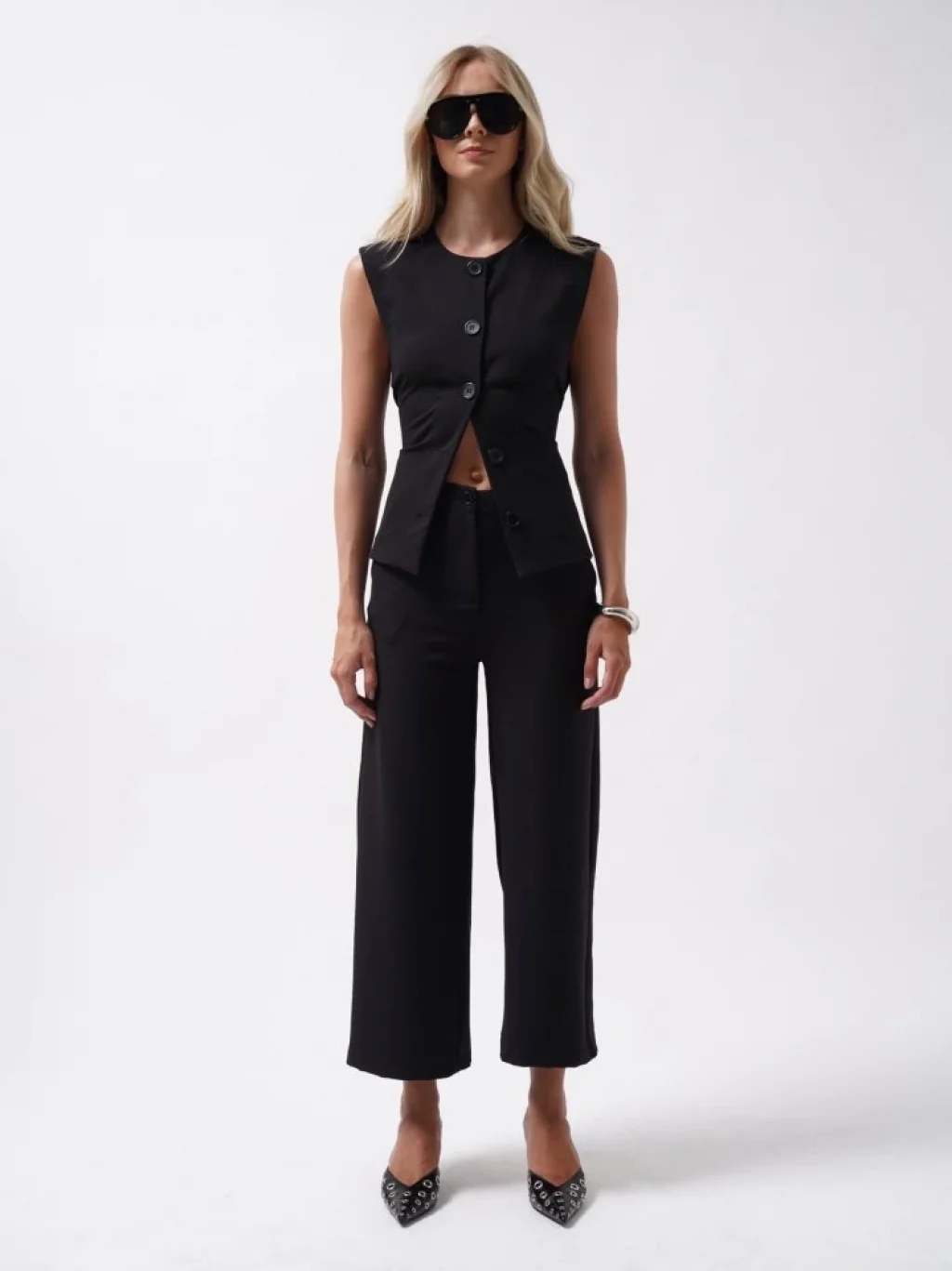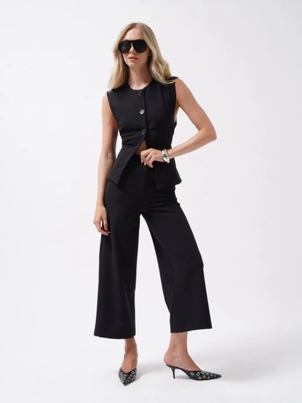 <p>Bol Paça Midi Boy Pantolon</p><br> <p>Modelin Ölçüleri: Boy:165, Kg:55, Göğüs:90, Bel:72, Kalça: 100</p><br> <p>Modelin üzerindeki ürün M/38 bedendir</p><br> <ul> </ul>