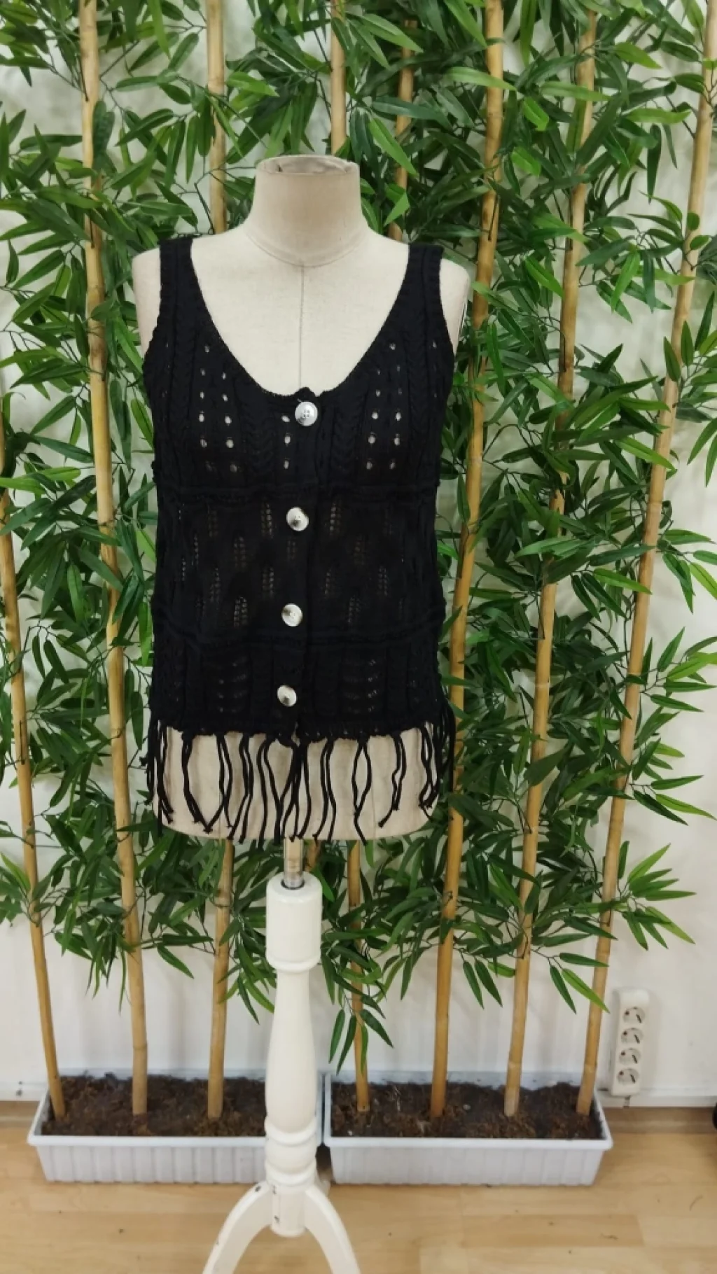 <p>Kadın Askılı Yuvarlak Yaka önden Düğmelipüsküllü Triko Bluz</p><br> <p>Modelin Ölçüleri: Boy:165, Kg:55, Göğüs:90, Bel:72, Kalça: 100</p><br> <p>Modelin üzerindeki ürün M/38 bedendir</p><br> <ul> <li>DESEN-Diğerleri</li><li>KALIP-Askılı</li> </ul>