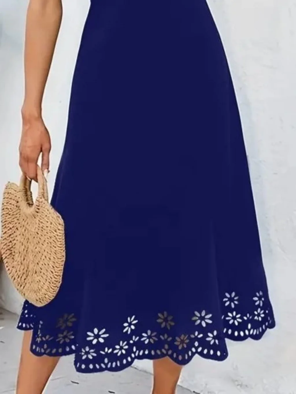 Kadın Kolsuz Etek Ucu Lazer Kesim çiçek Desenli Midi Boy Ithal Krep Elbise