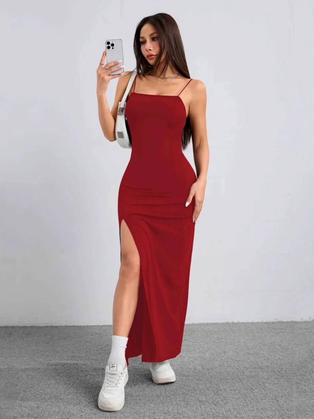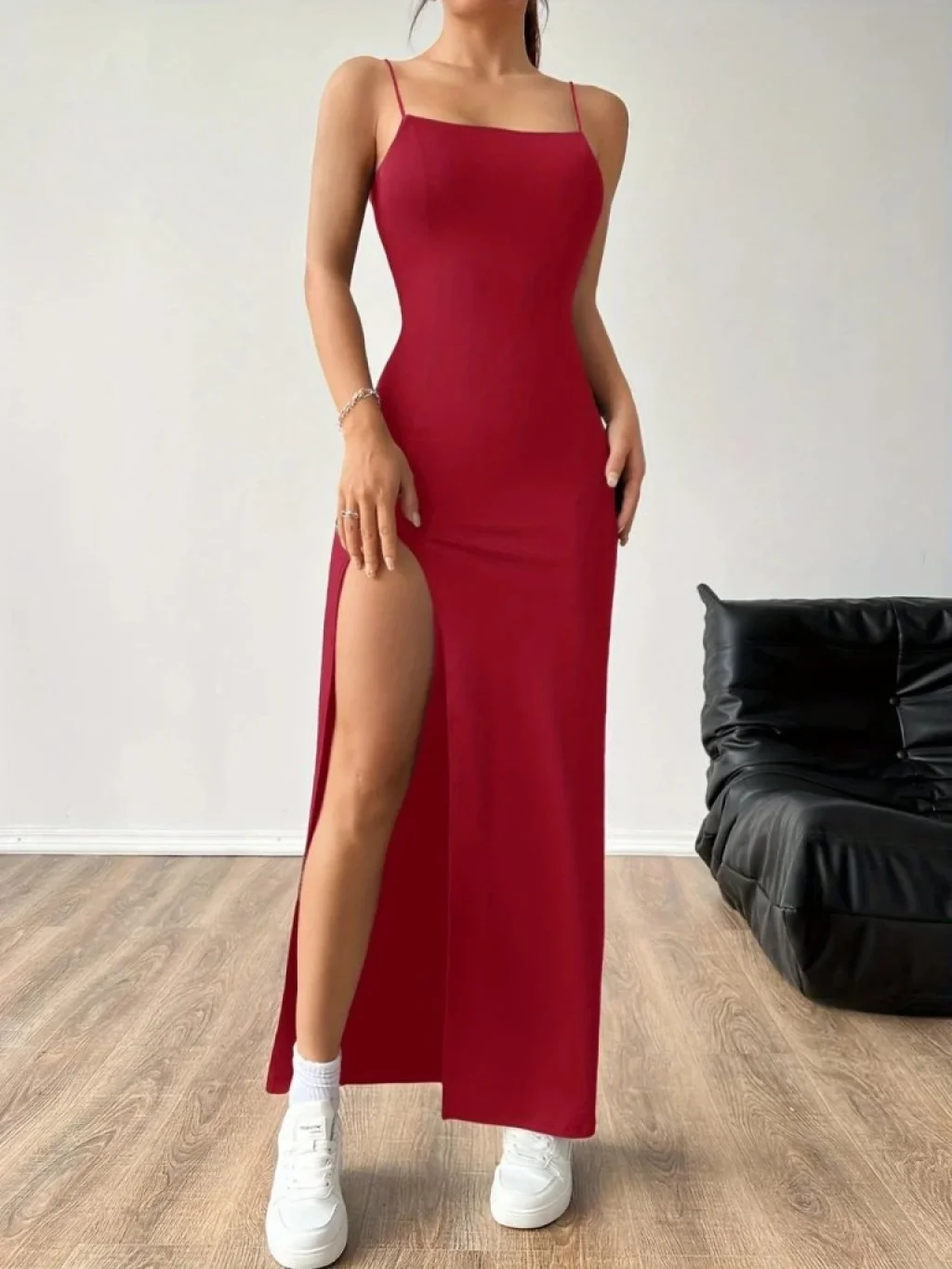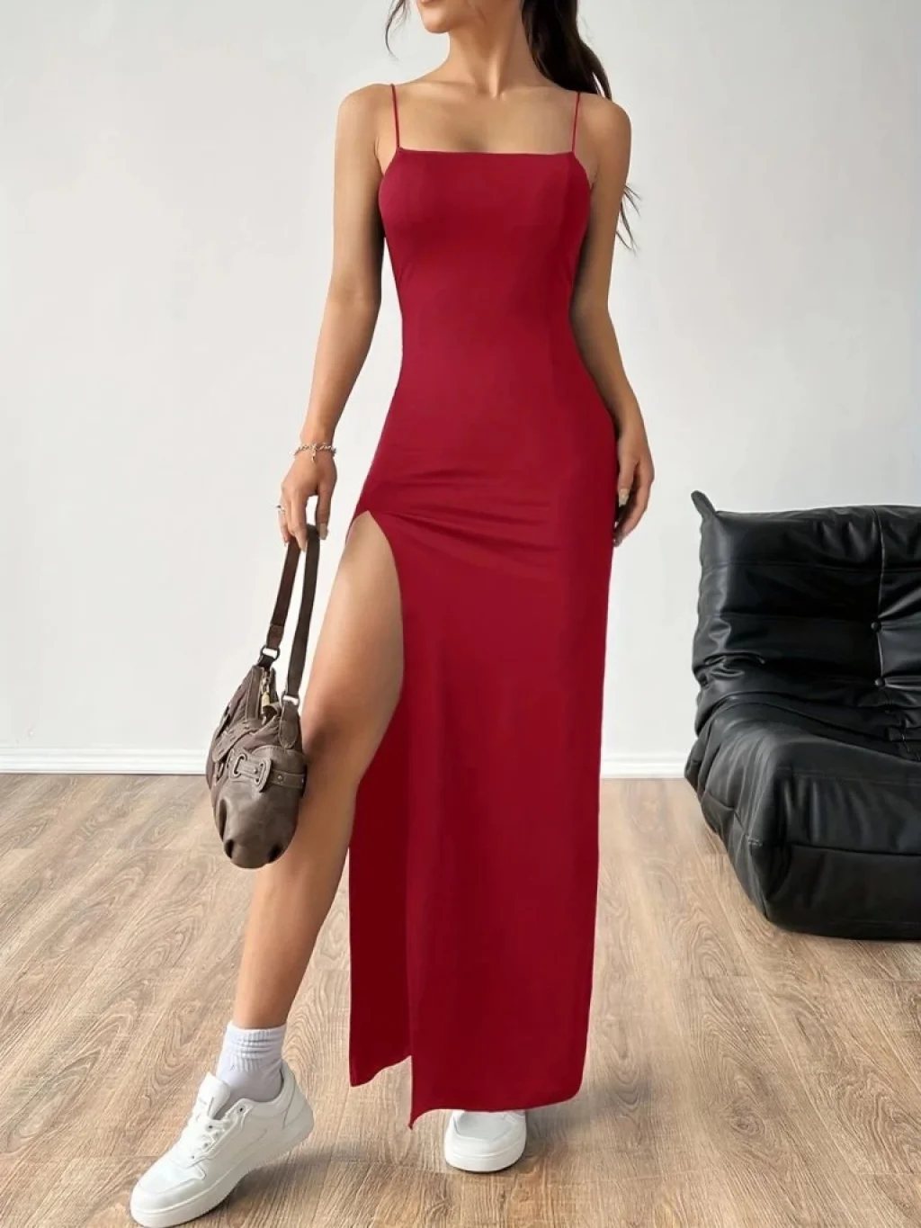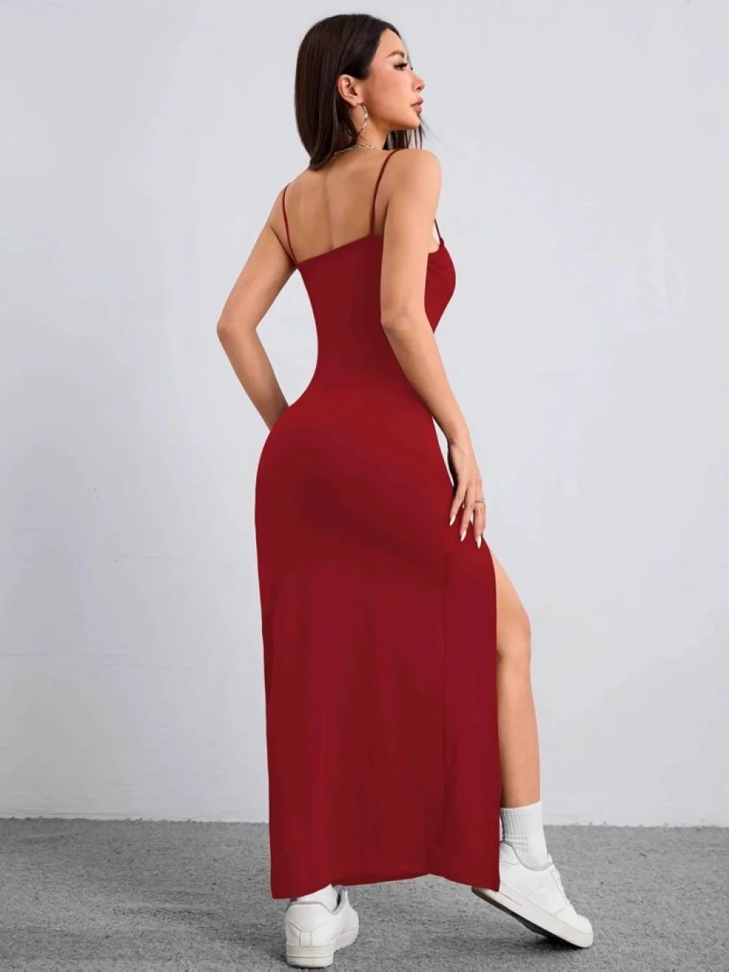 Kadın Ip Askılı Yandan Yırtmaçlı Janjan Krep Elbise