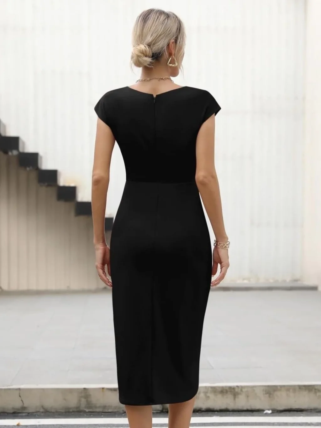 Kadın Yarım Ay Kollu Bisiklet Yaka Yandan Drapeli Ithal Krep Elbise