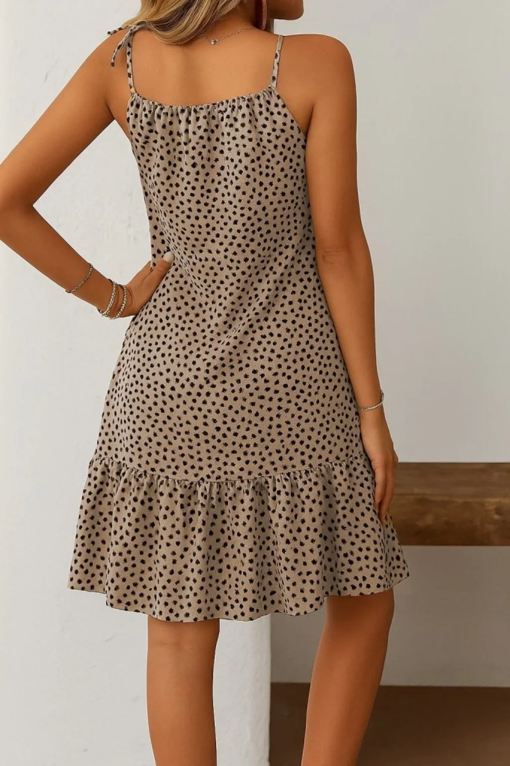 Kadın Boyundan Askılı Desenli Fırfırlı Süprem Elbise