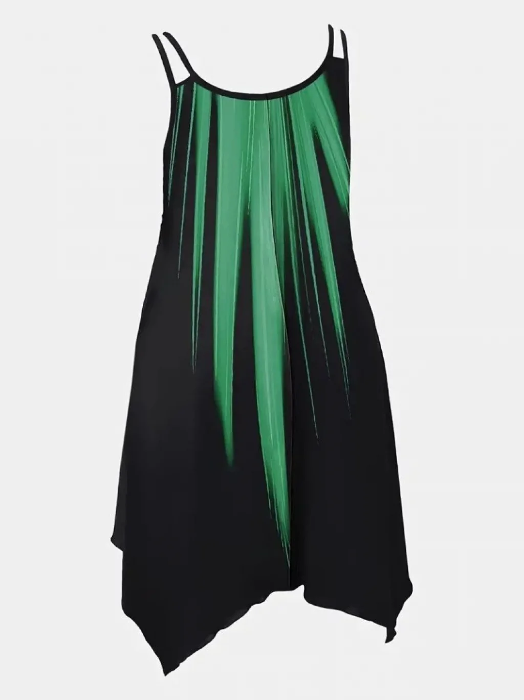 Kadın Askılı Yuvarlak Yaka Asimetrik Detaylı Desenli Süprem Elbise