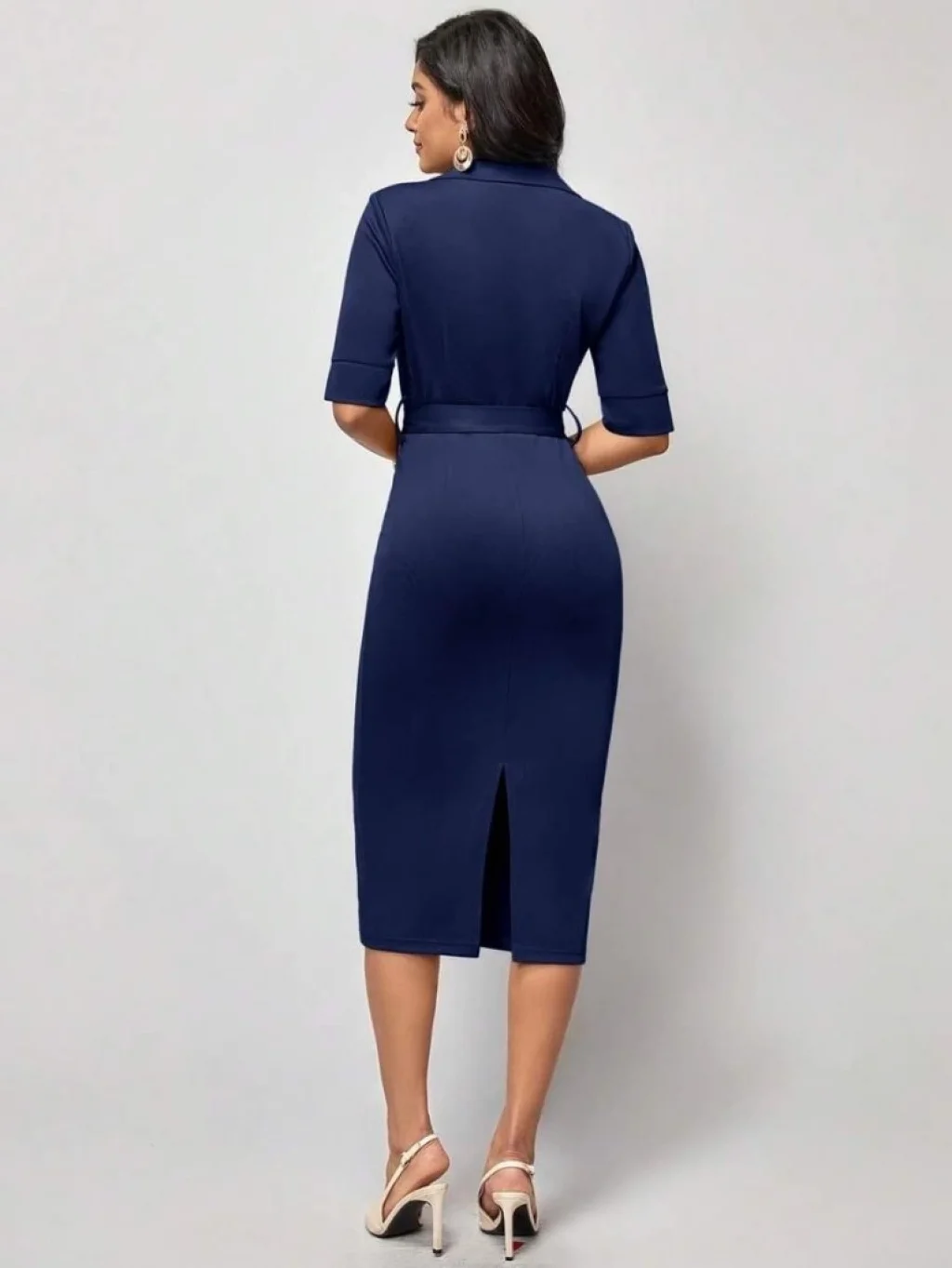 Kadın Kısa Kollu Yakalı Kruvaze Yakalı Beli Kemerli Midi Modal Elbise