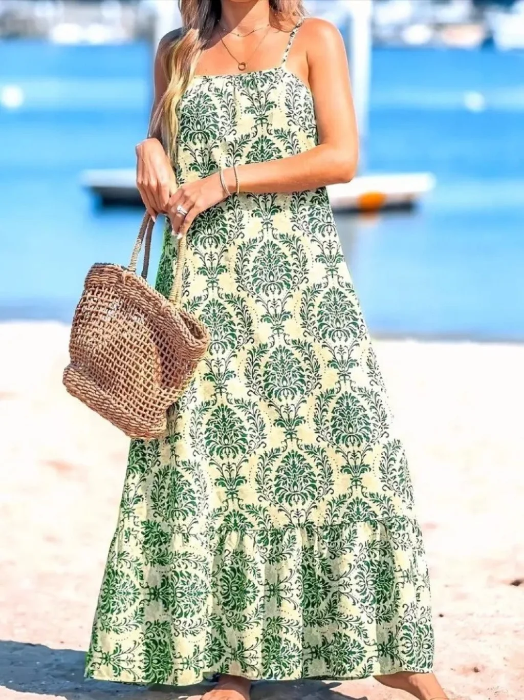 Kadın Ip Askılı Desenli Fırfırlı Süprem Elbise