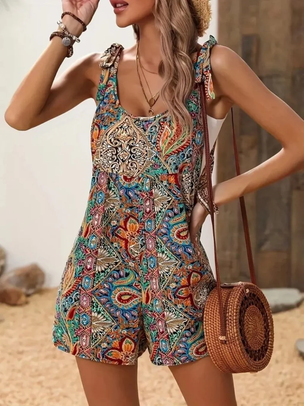 <p>Kadın Omuzlardan Askılı Desenli Geniş Paçalı Süprem Tulum</p><br> <p>Modelin Ölçüleri: Boy:165, Kg:55, Göğüs:90, Bel:72, Kalça: 100</p><br> <p>Modelin üzerindeki ürün M/38 bedendir</p><br> <ul> <li>YAKA-Diğerleri</li><li>KOL UZUNLUK-Kolsuz</li><li>BACAK BOYU-Kısa</li> </ul>