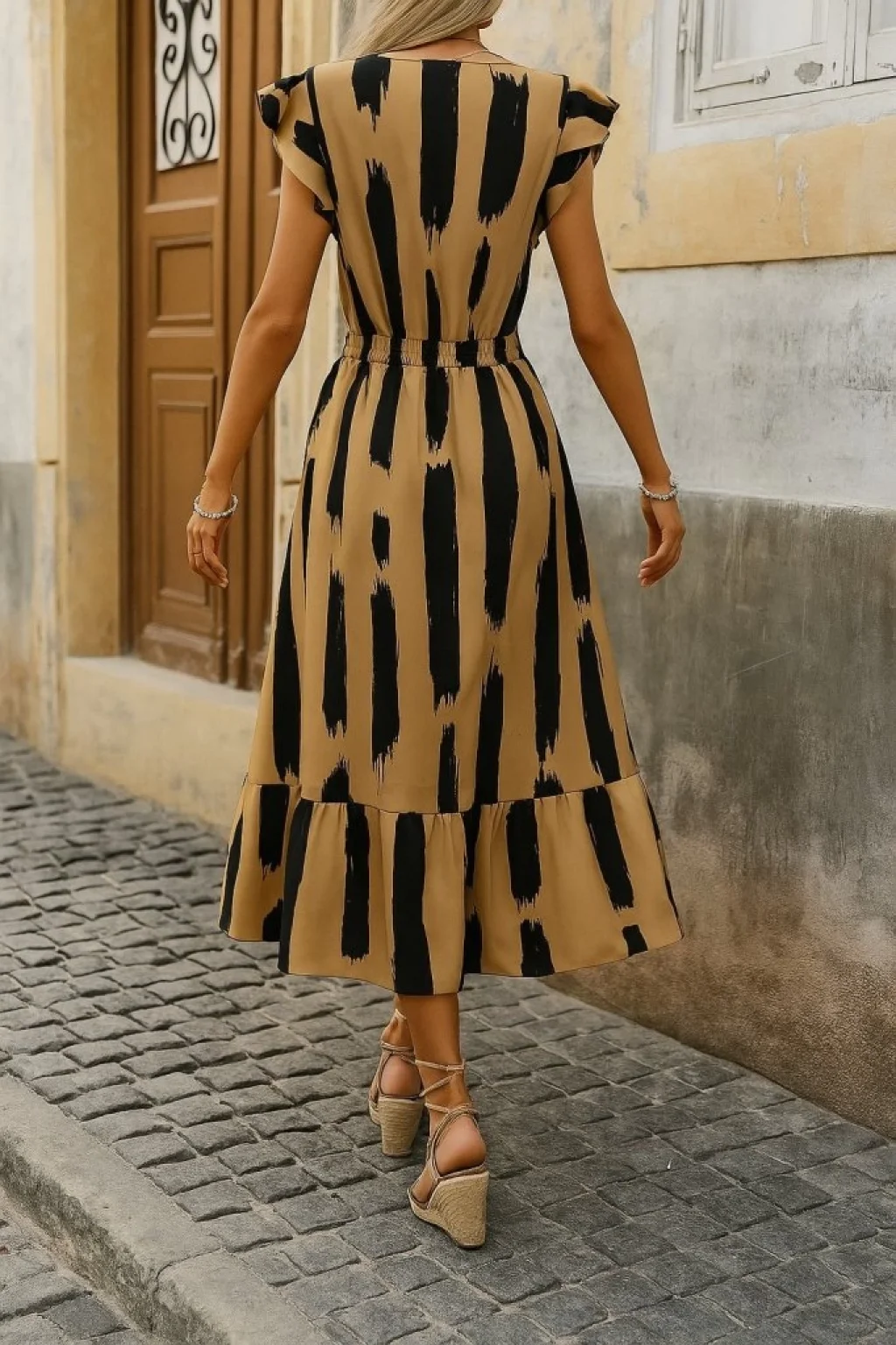 Kadın Kısa Kollu Kruvaze Yakalı Fırfırlı Süprem Elbise