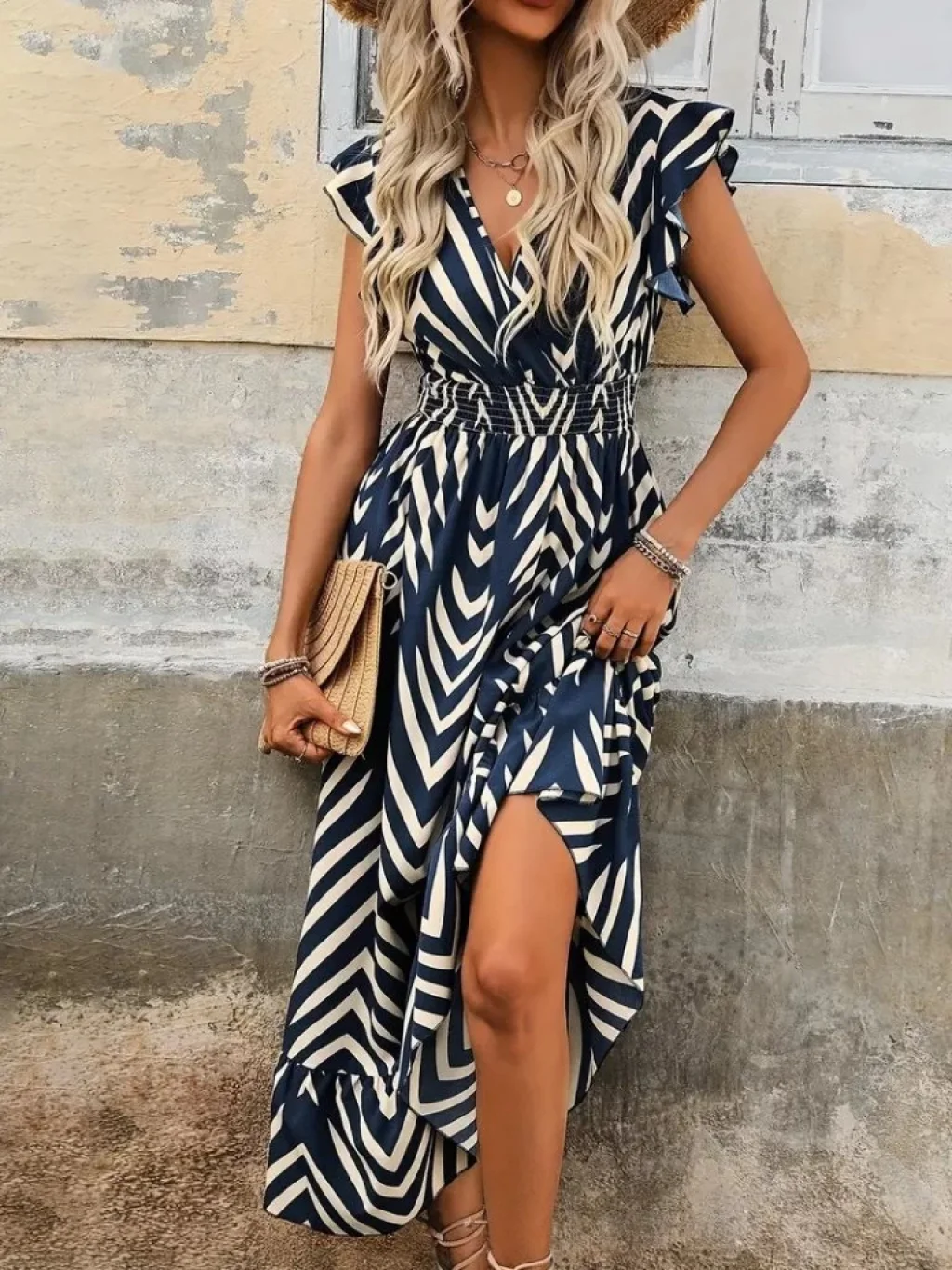 Kadın Kısa Kollu Kruvaze Yakalı Fırfırlı Süprem Elbise
