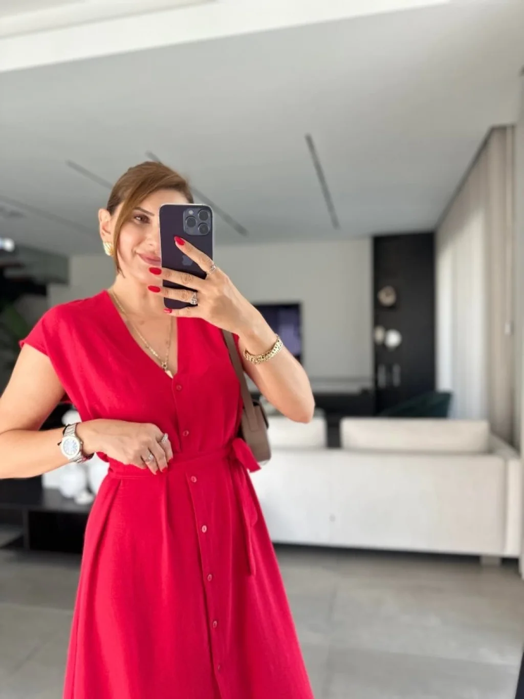 <p>Kadınn V Yaka Düğme Detay Kuşak Dahil Elbise</p><br> <p>Modelin Ölçüleri: Boy:165, Kg:55, Göğüs:90, Bel:72, Kalça: 100</p><br> <p>Modelin üzerindeki ürün M/38 bedendir</p><br> <ul> </ul>