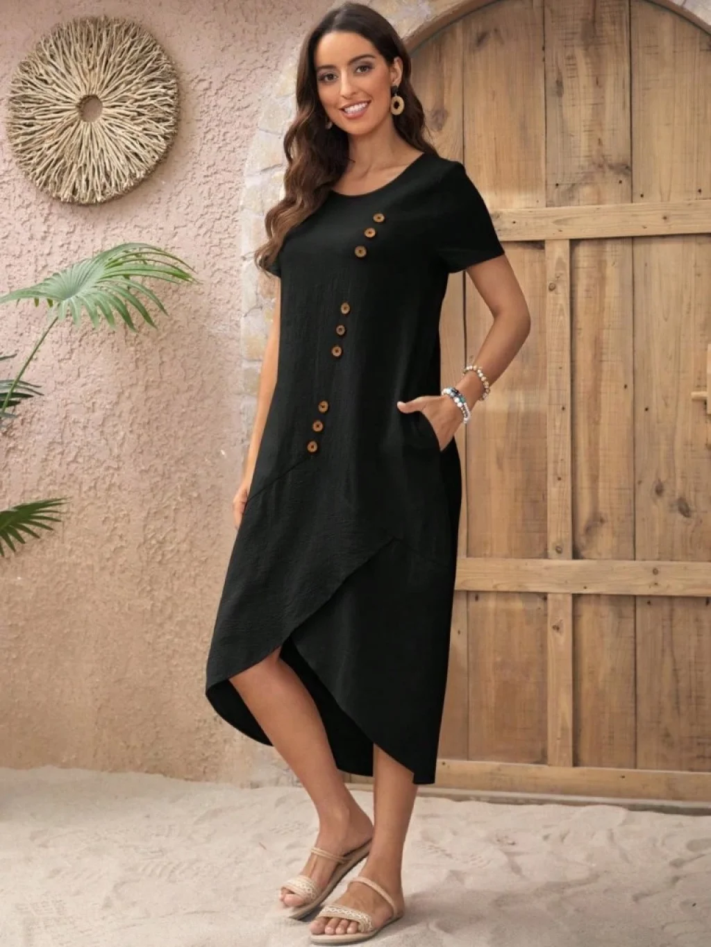 Kadın Kısa Kollu Bisiklet Yaka Düğme Detay Müslim Elbise