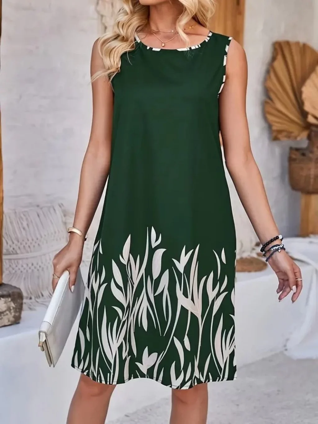 Kadın Askılı Yuvarlak Yakalı Yaprak Desenli Dalgıç Elbise
