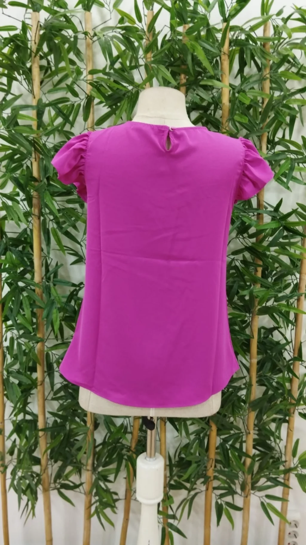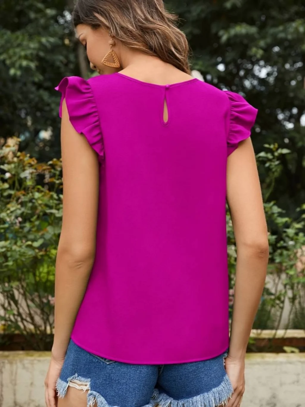 Kadın Yuvarlak Yaka Kolları Fırfırlı Krep Bluz