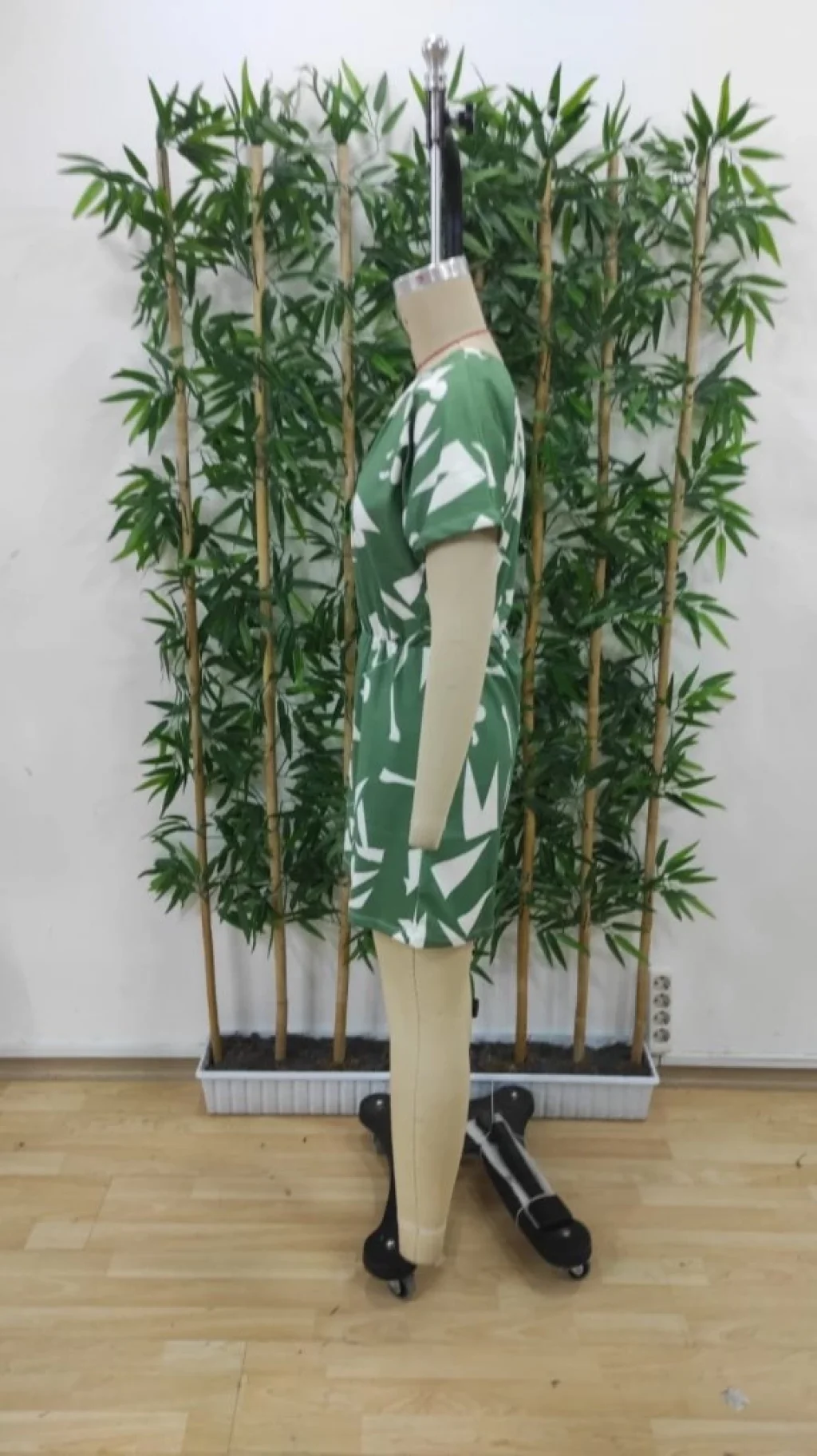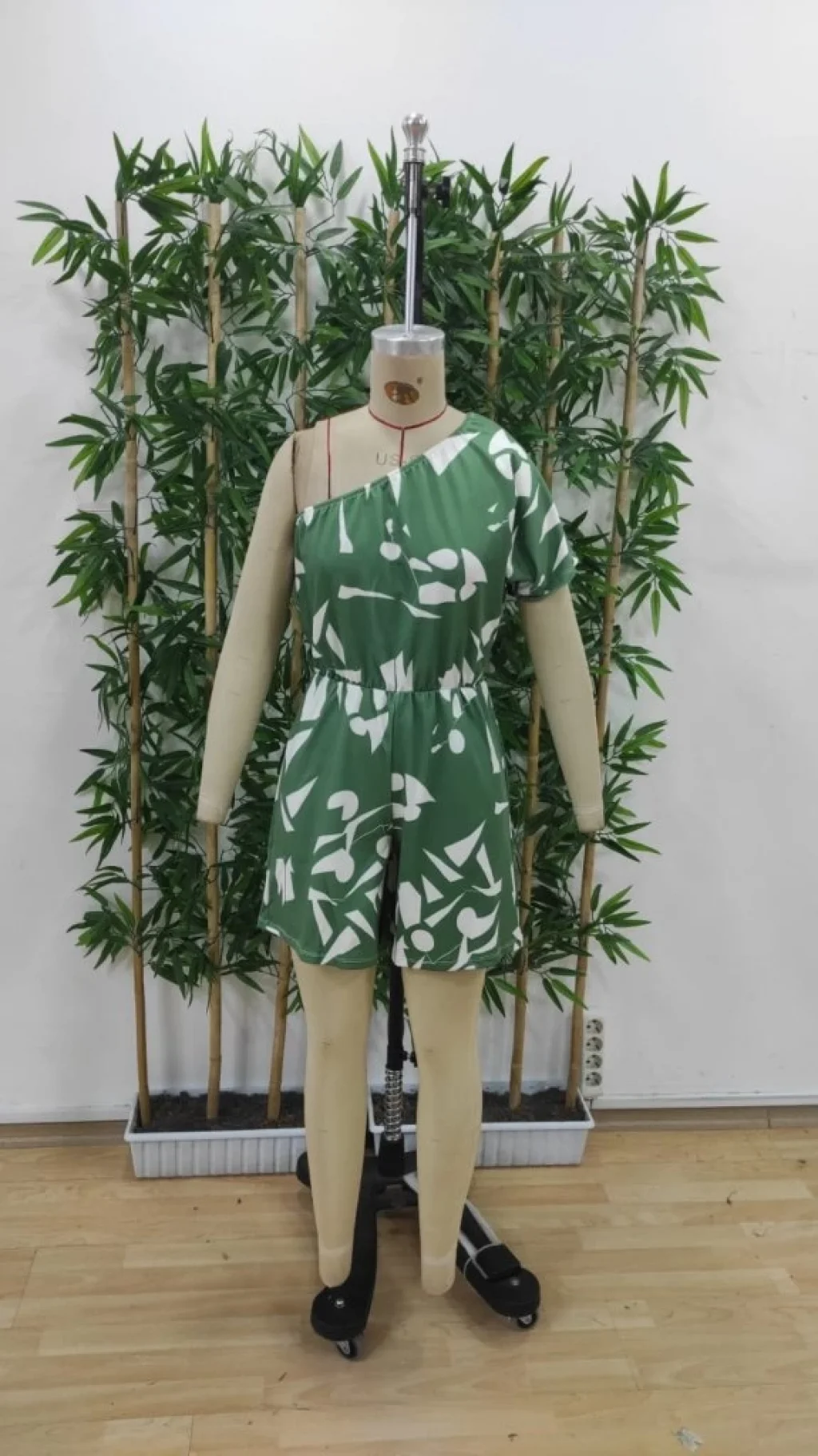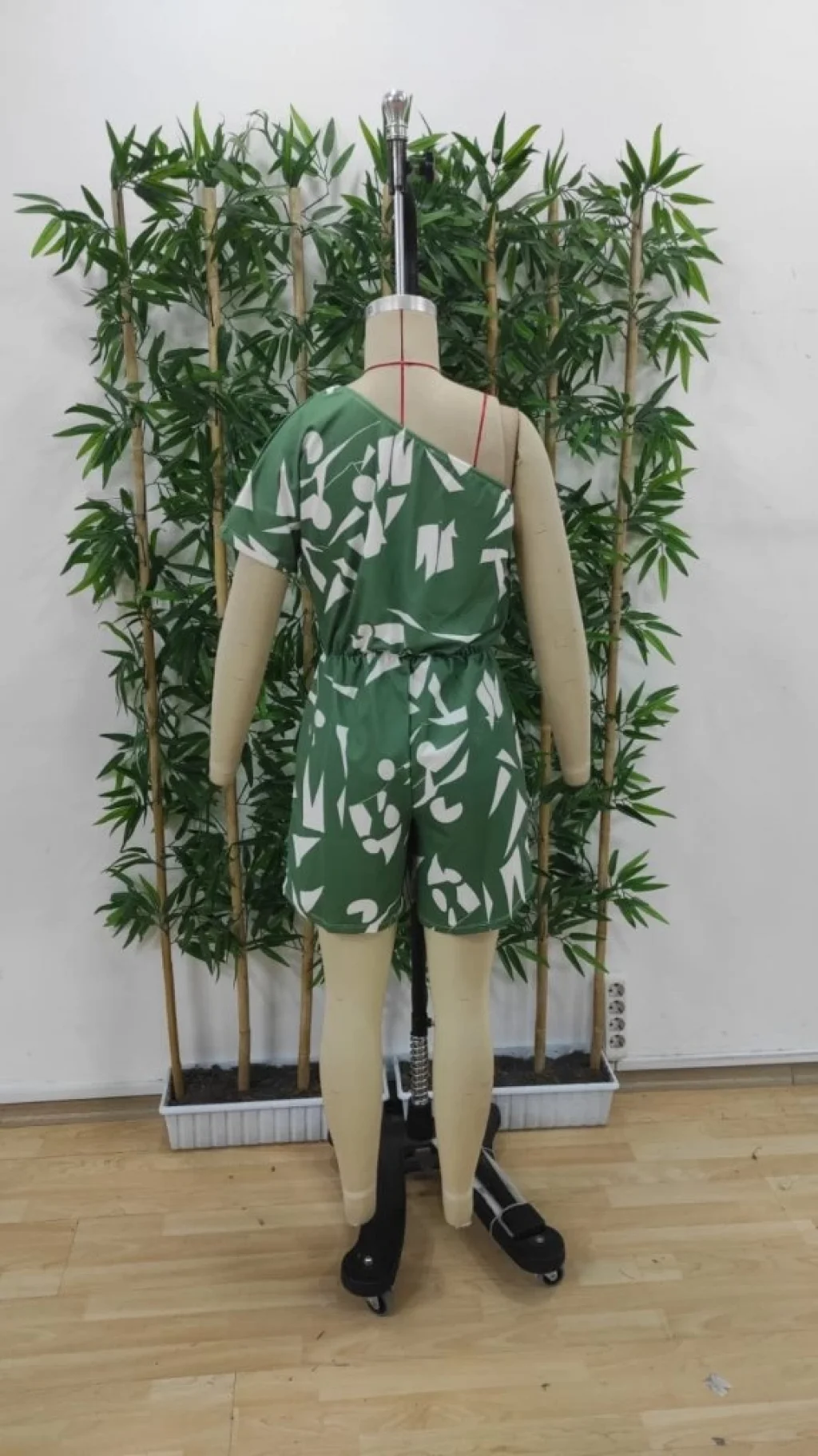 Kadın Tek Omuzdan Açık Beli Lastikli Desenli Süprem Tulum