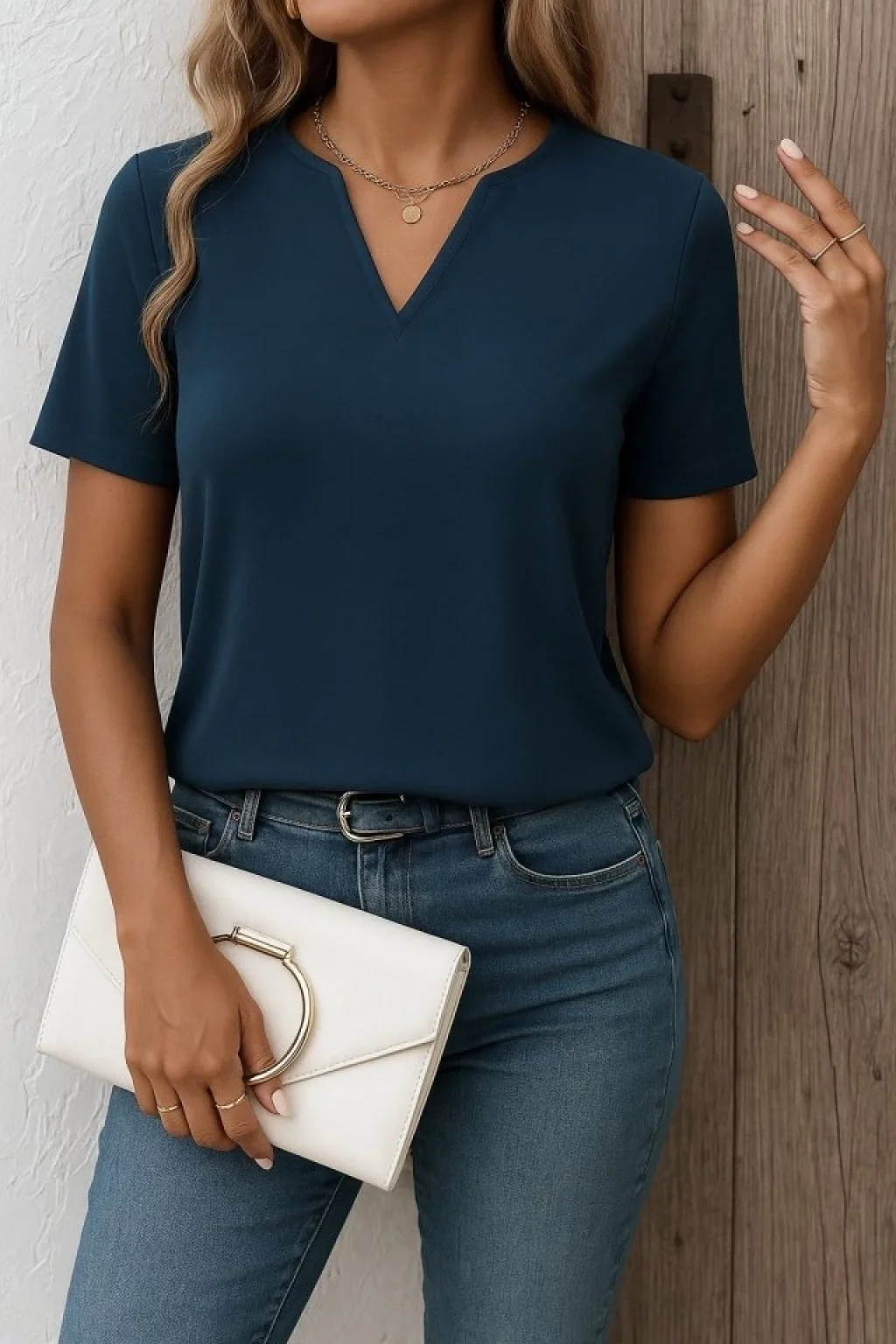 Kadın Kısa Kollu V Yakalı Ithal Krep Elbise